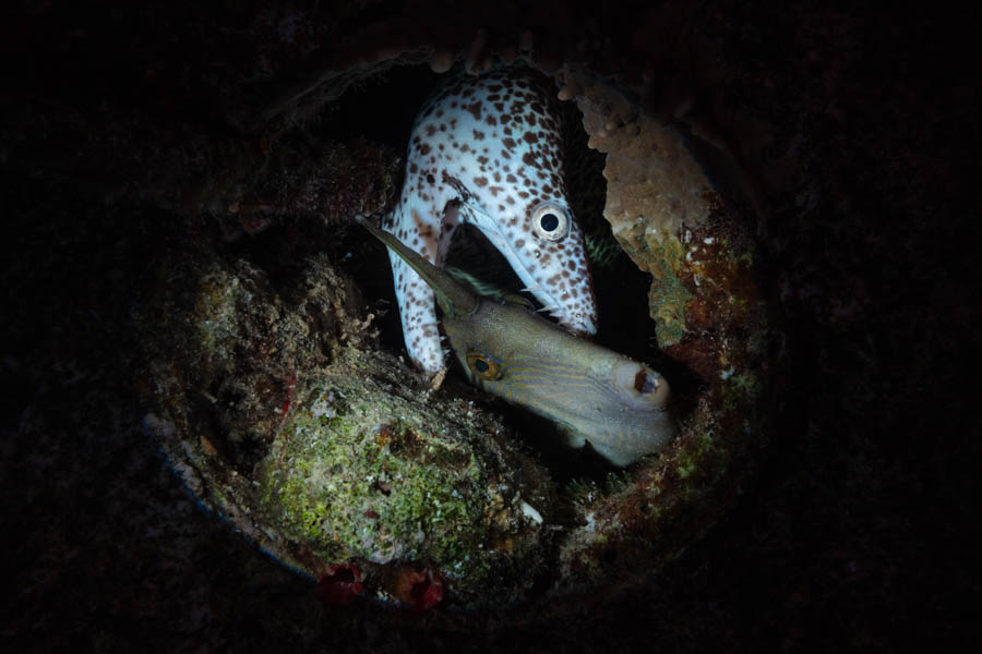 Spotted Moray & Orangespotted Filefish