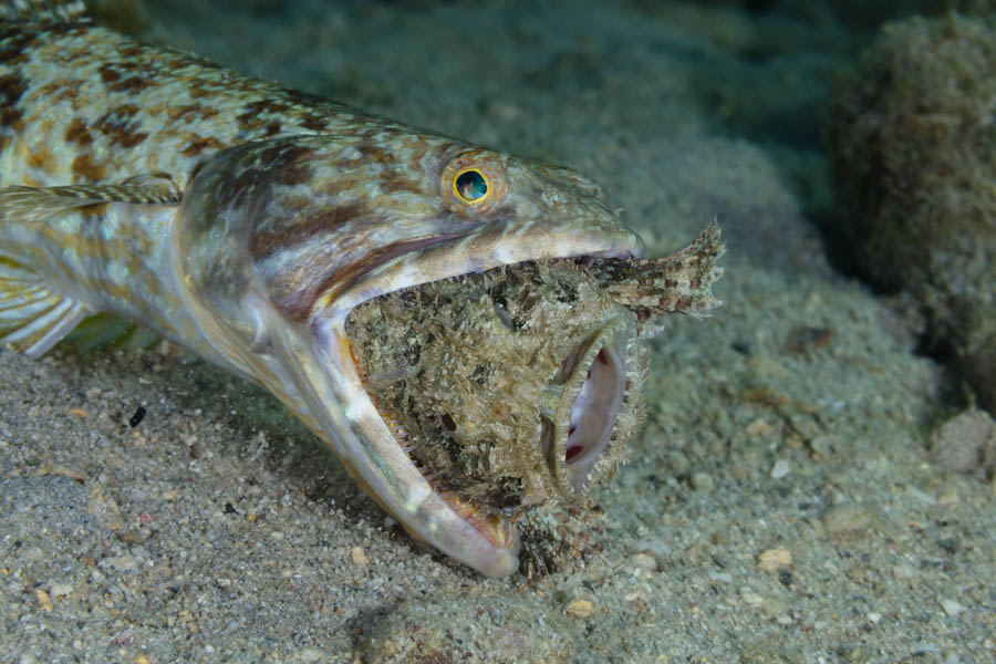 Sandiver with a Mouthful of Blue Tang