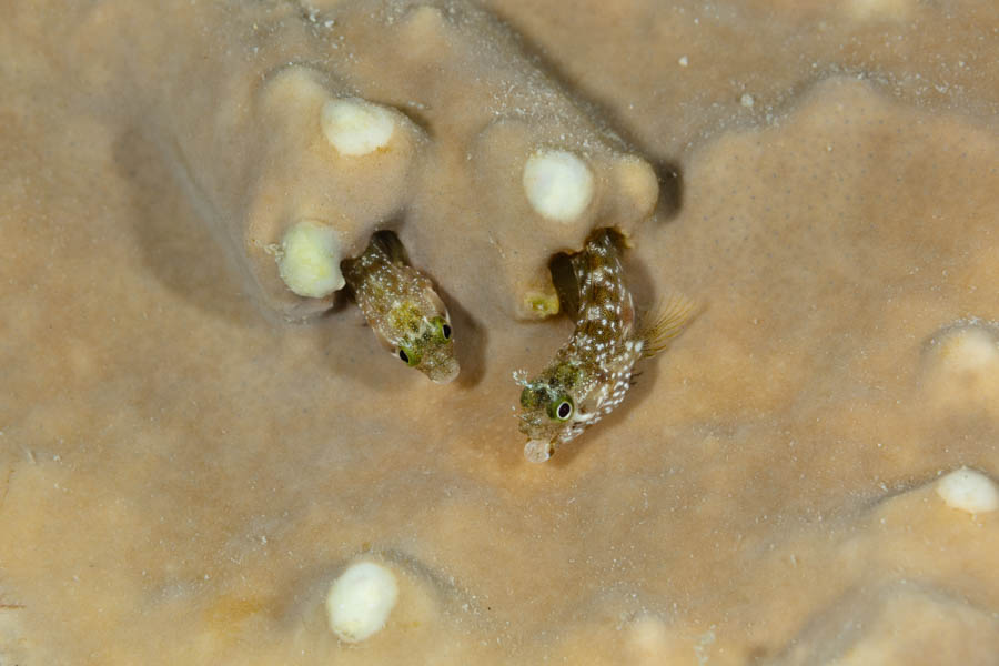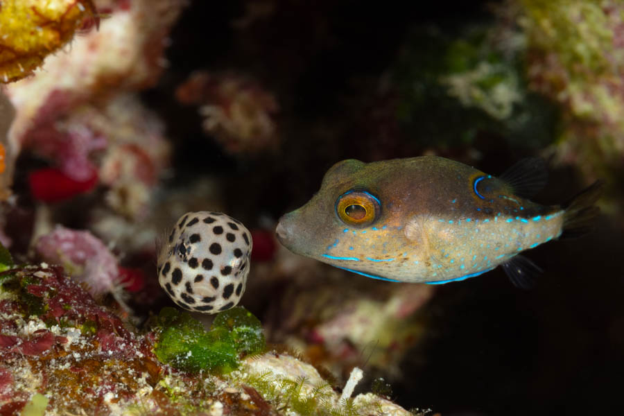 Juvenile Spotted Trunkfish and a Sharpnose Puffer