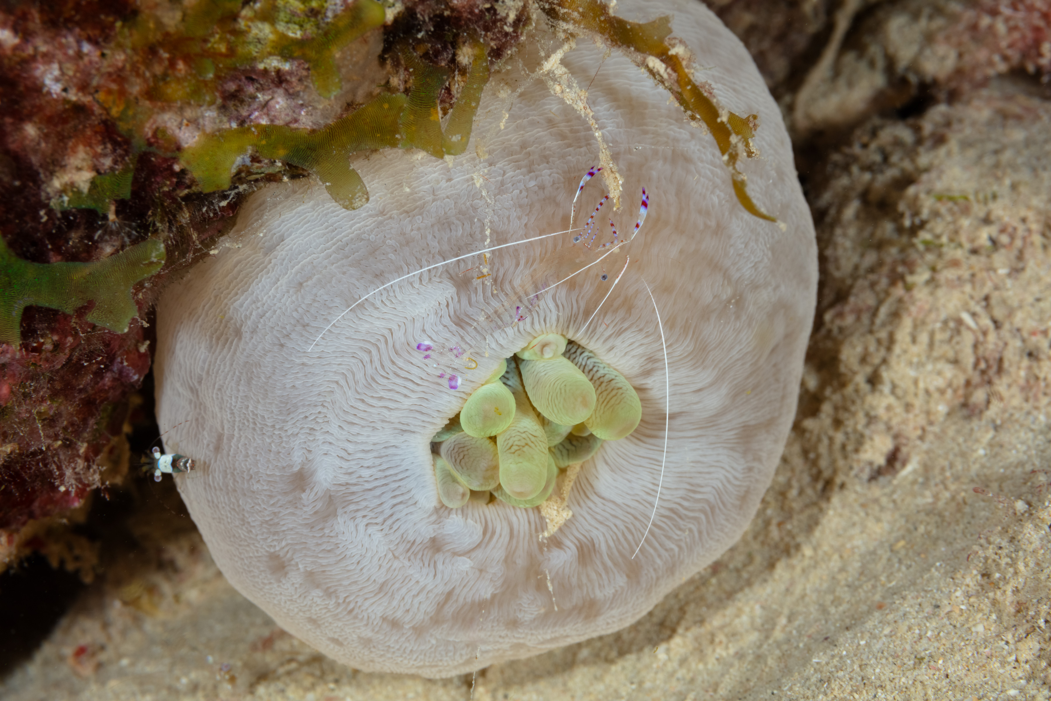 The Giant Anemone retracts its tentacles when disturbed, and its body is sometimes hidden.