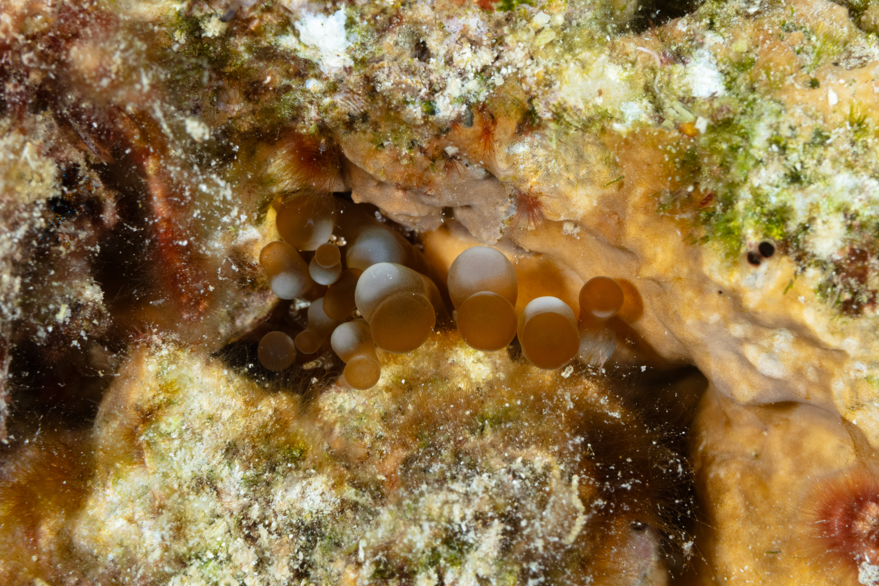 The Hidden Anemone often hides in crevices or corals, with its small tentacles sticking out.