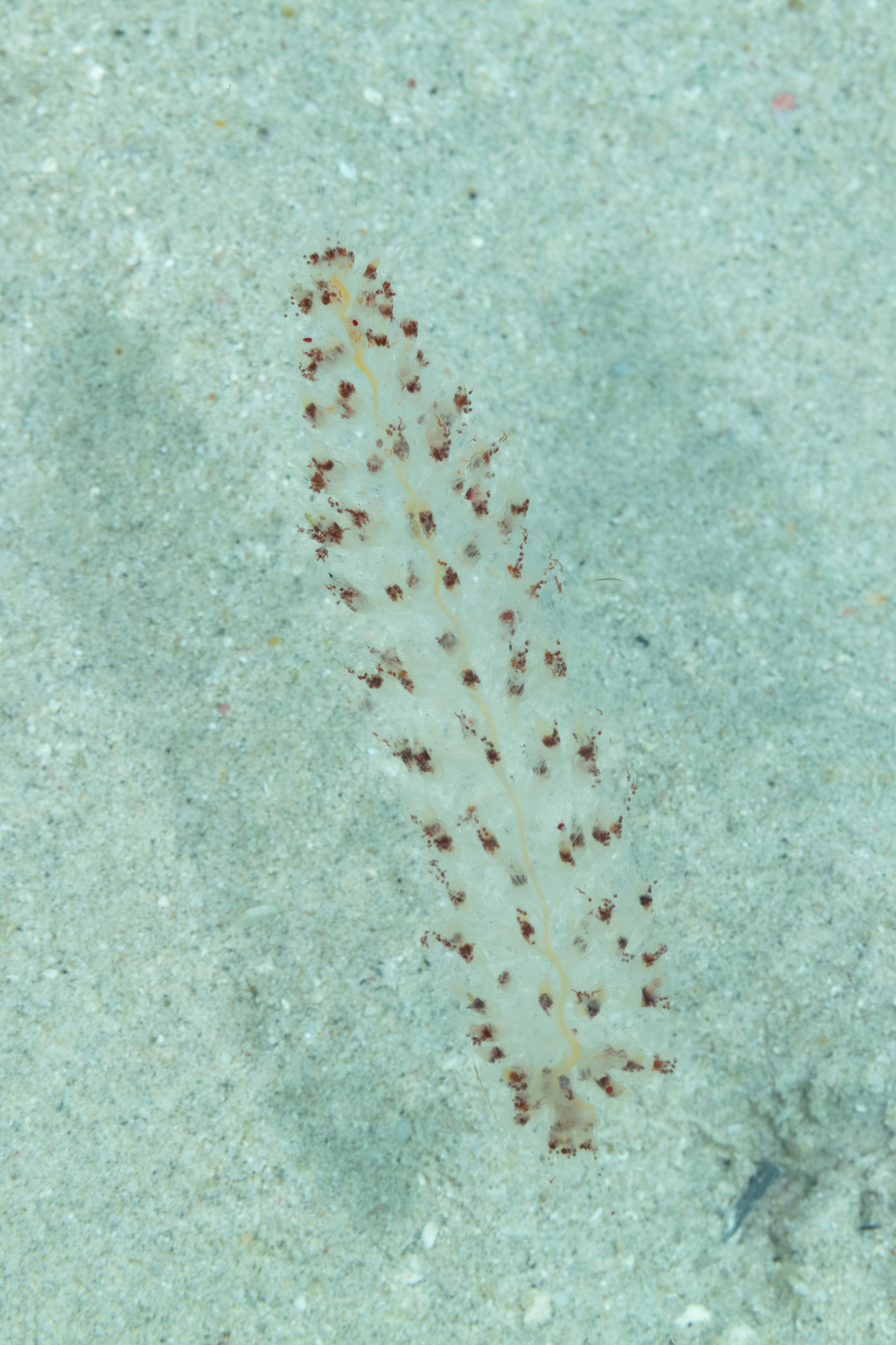The Red-Spotted Siphonophore has a painful sting. Each tiny polyp in its colony carries powerful stinging cells that can cause intense redness and discomfort, which usually resolve quickly. It often drifts just below the surface or in open water, and its bell-shaped parts help it swim and change direction.