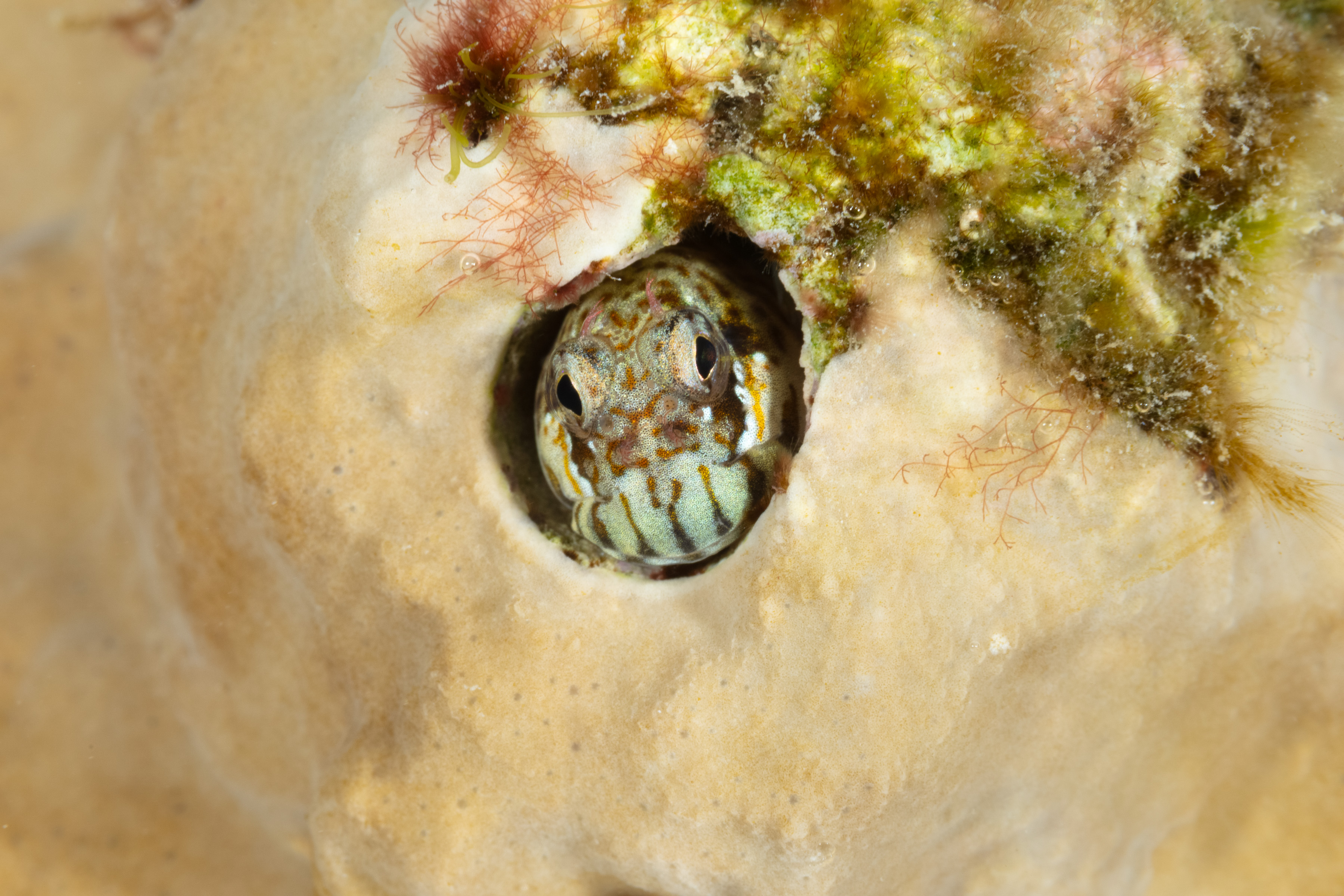 The Pearl Blenny can be found in shallow waters, tide pools, or sheltering in Barnacle Shells on pier pillars.