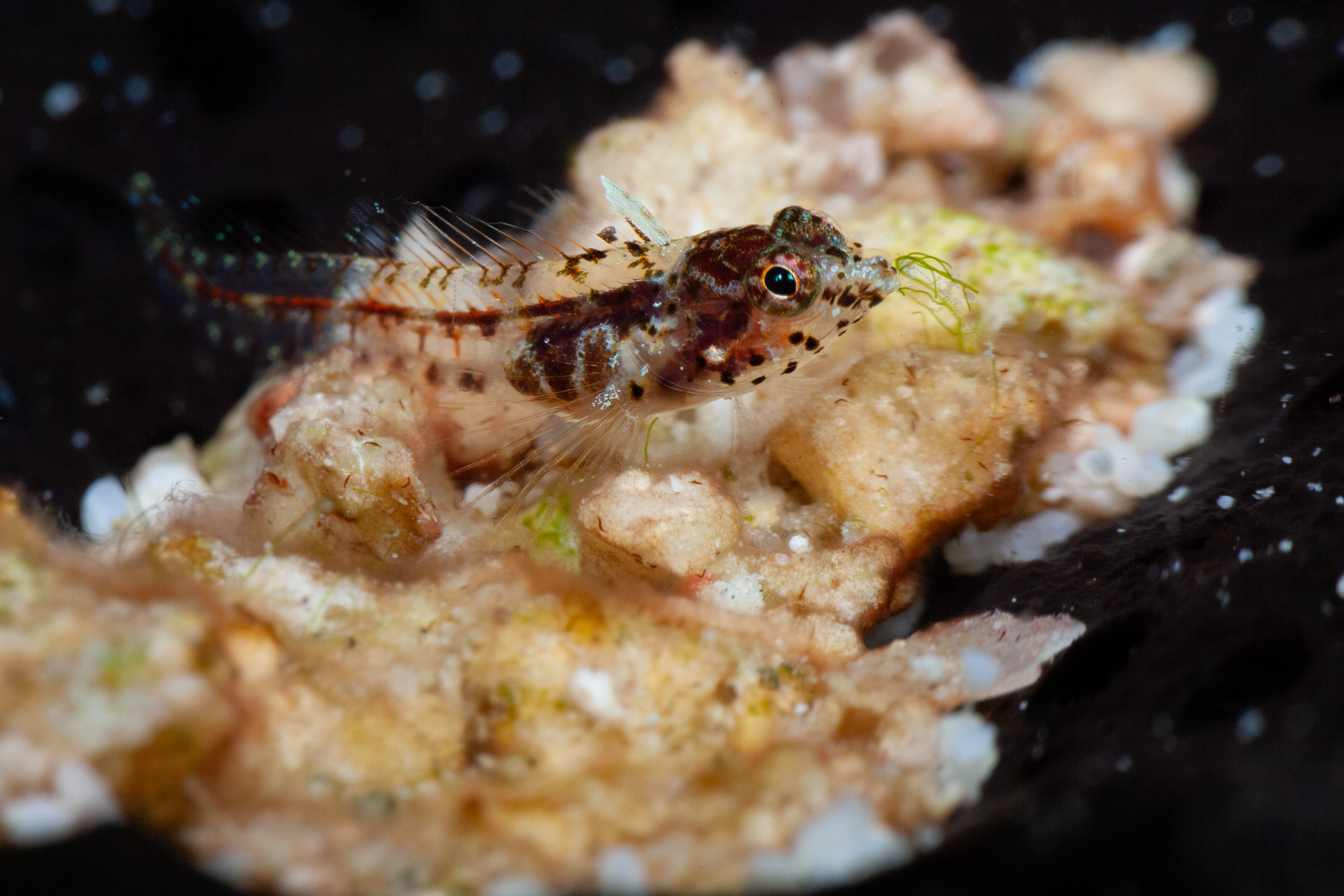 This Southern Smoothhead Glass Blenny is a variation with numerous dark spots.