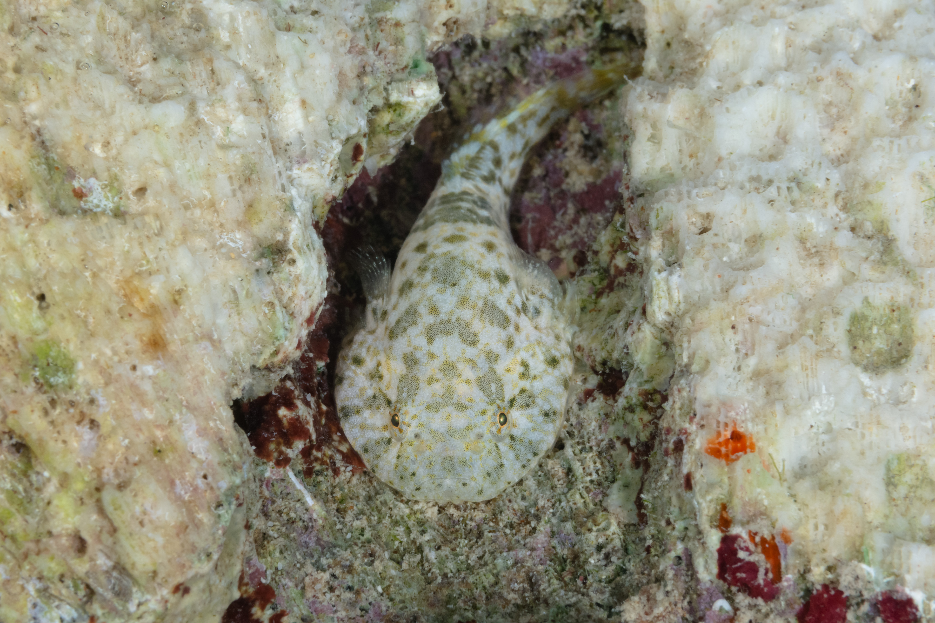 The Stippled Clingfish can be found in shallow water between the rocky rubble.