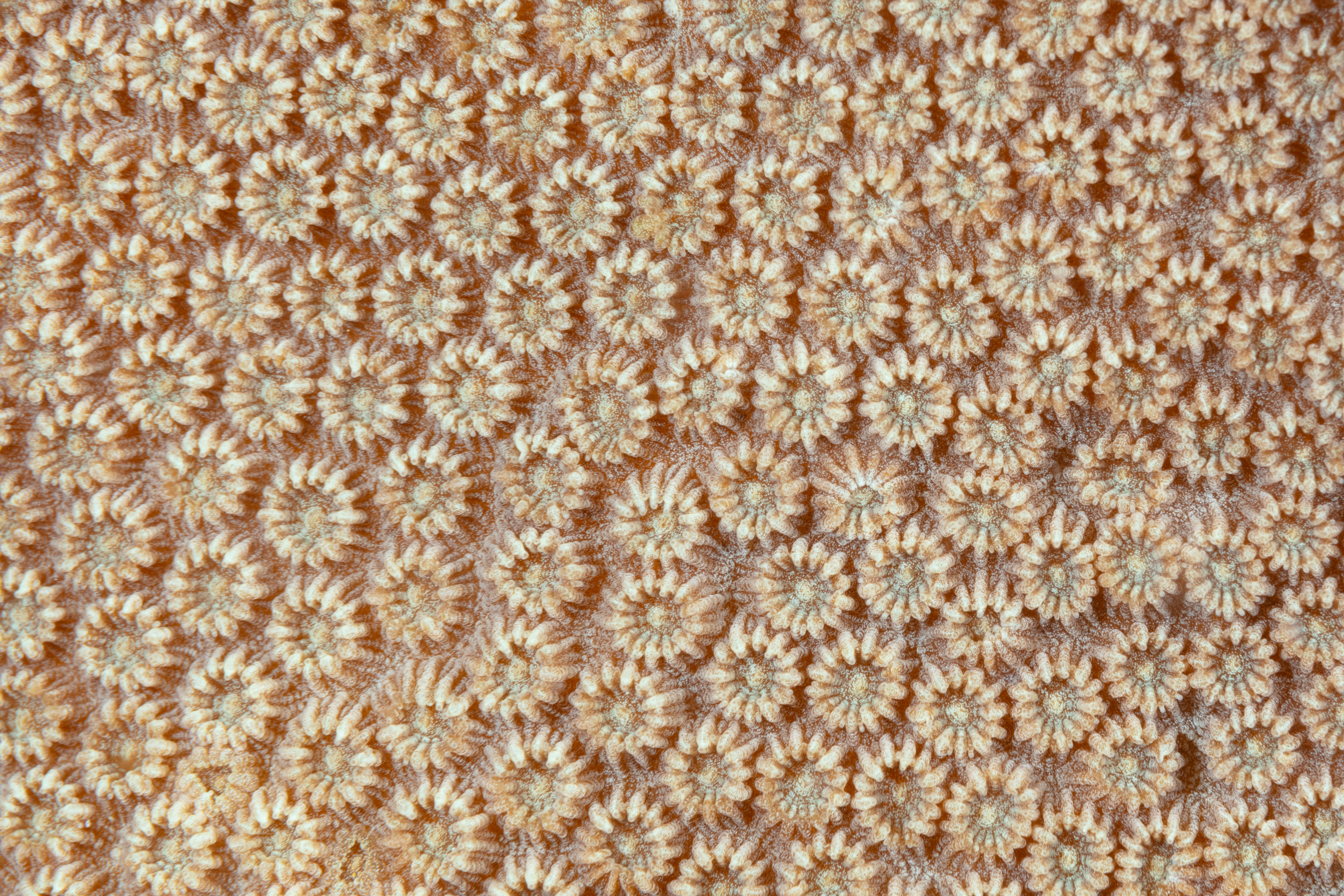This Coral forms smooth, dome-shaped colonies with widely spaced skeletal cups where tiny coral polyps live. It also has an encrusting variation that spreads across surfaces. Its colors range from cream to tan, brown, and gray.