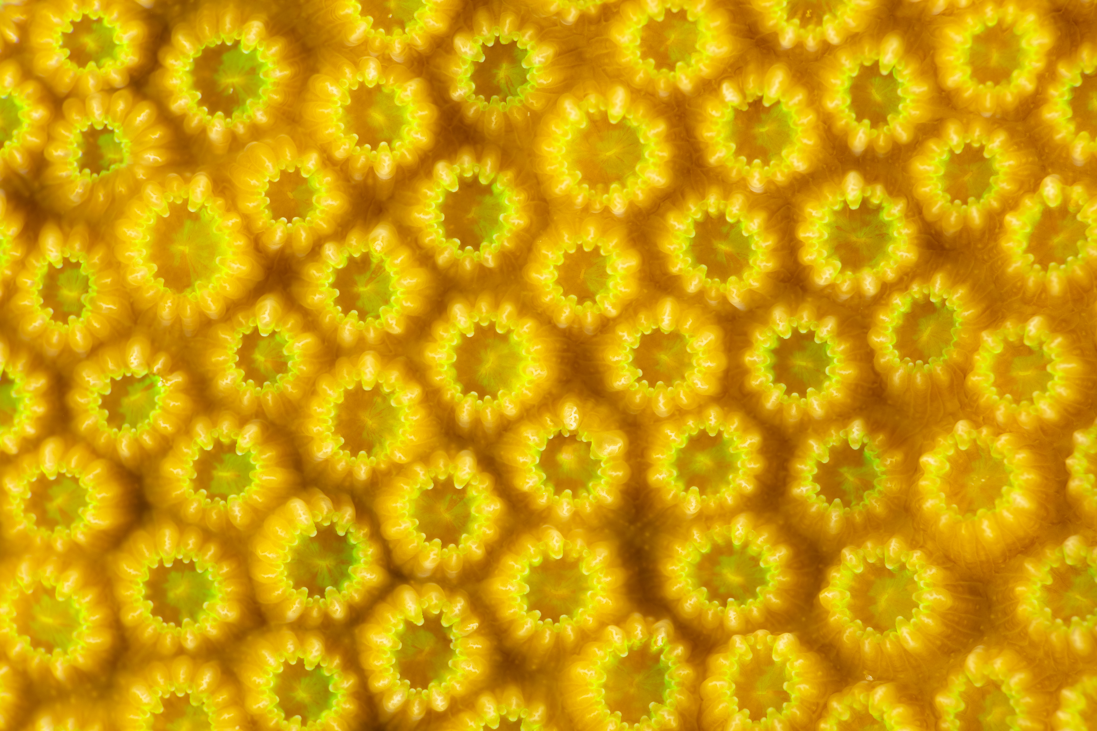 This Coral grows in vertical columns with rounded tops. The living tops are smooth and show evenly spaced small coral openings. Its color ranges from light brown to green, yellow-brown or gray.