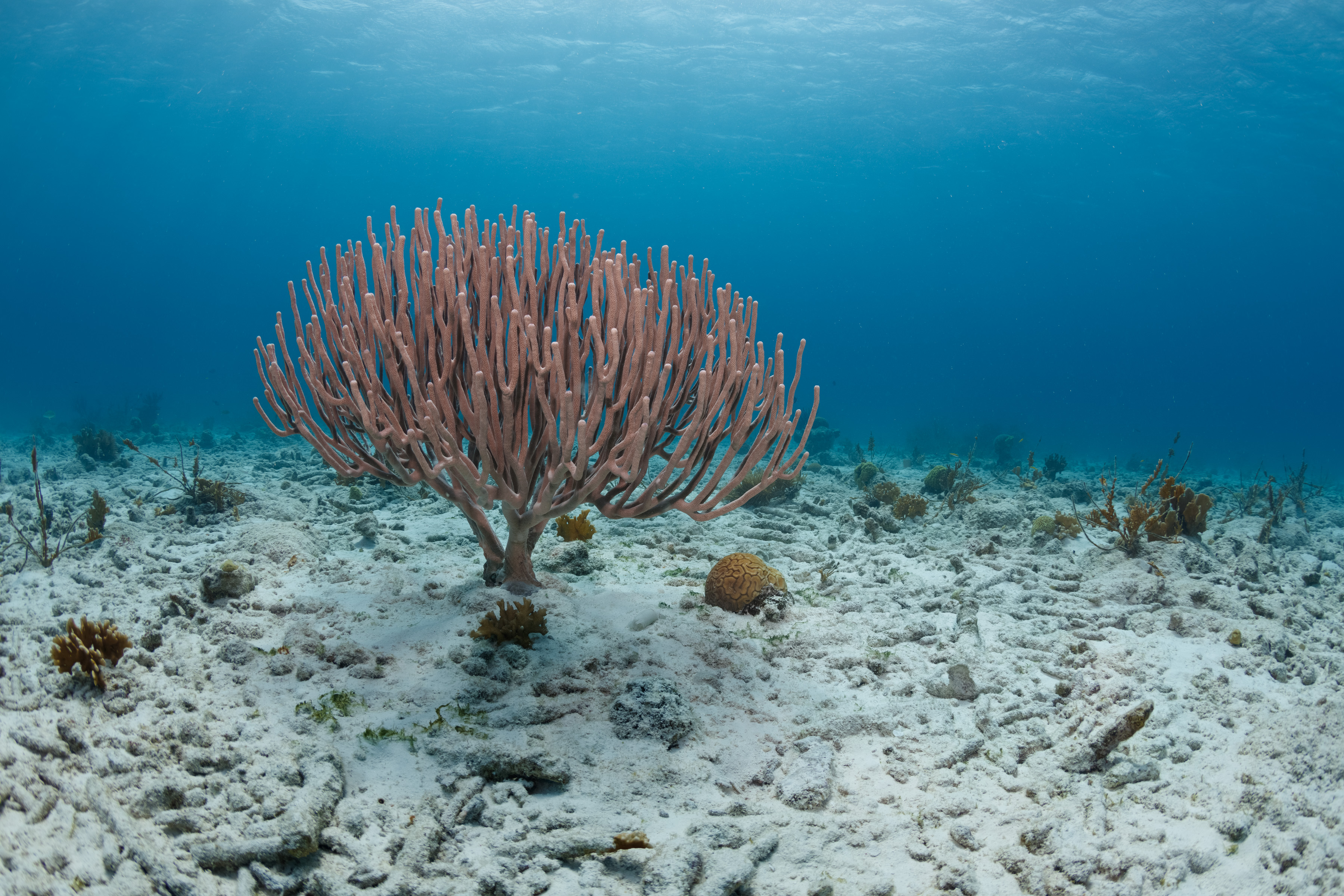 Porous Sea Rods belong to the genus Pseudoplexaura and include several different species. Each colony is either male or female, and in summer, after full moons, they release eggs or sperm into the water. Some species produce natural chemicals that are being studied for potential cancer treatments.