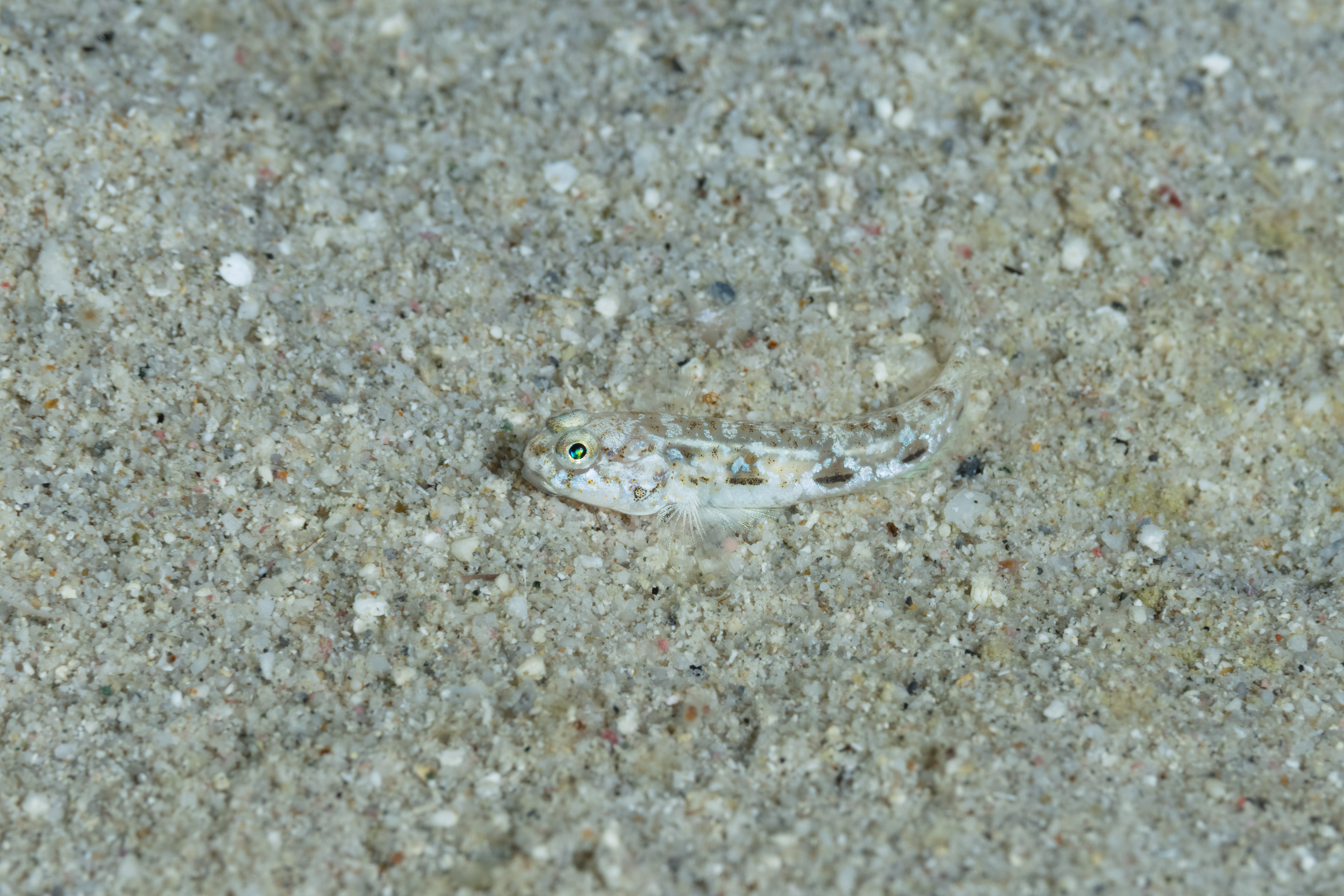 The Dash Goby is often seen in sandy rubble areas near shelter or burrowed in the sand. It sometimes shares burrows with Snapping Shrimp.