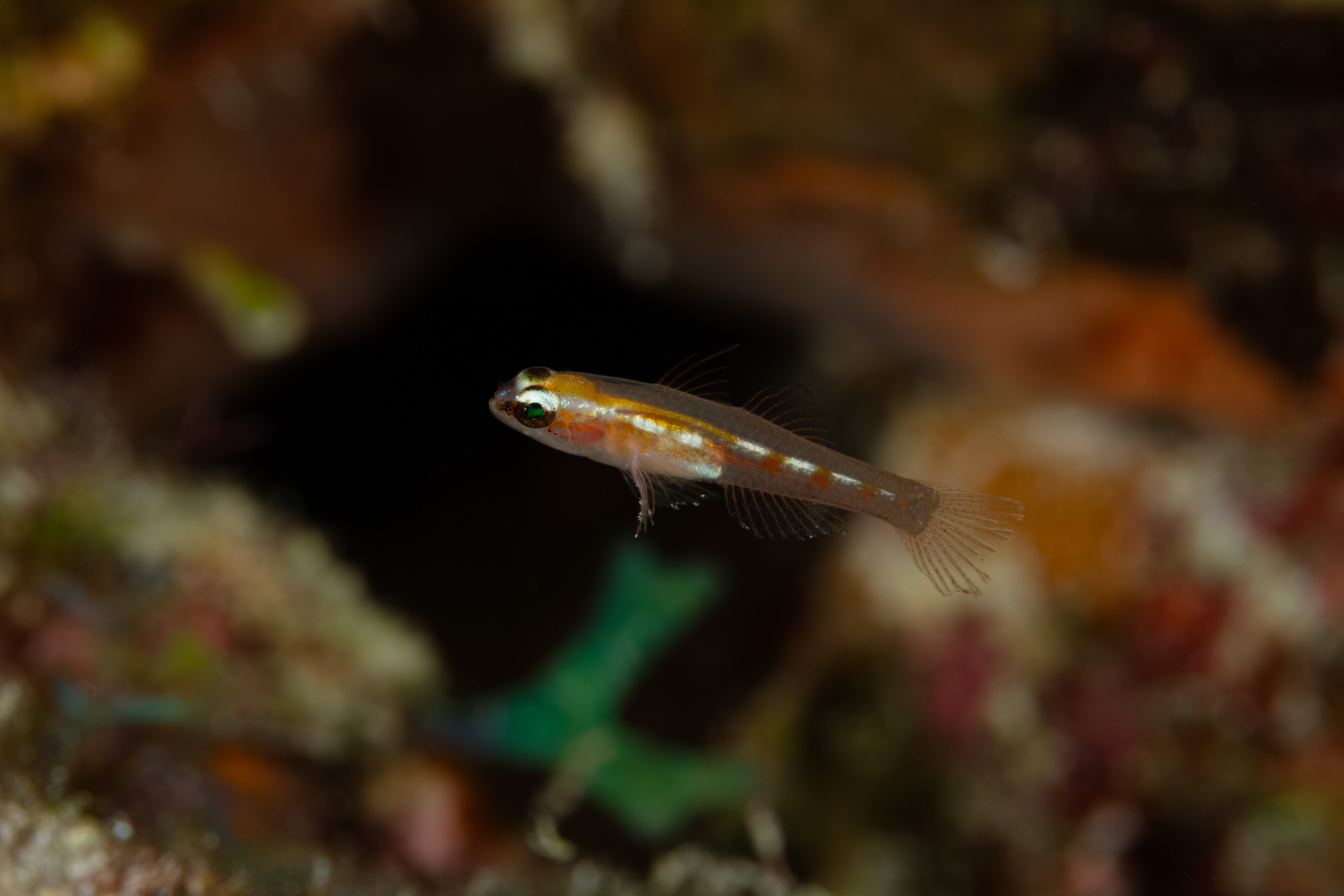 The Glass Goby forms small or large groups, hovering near crevices or coral heads.