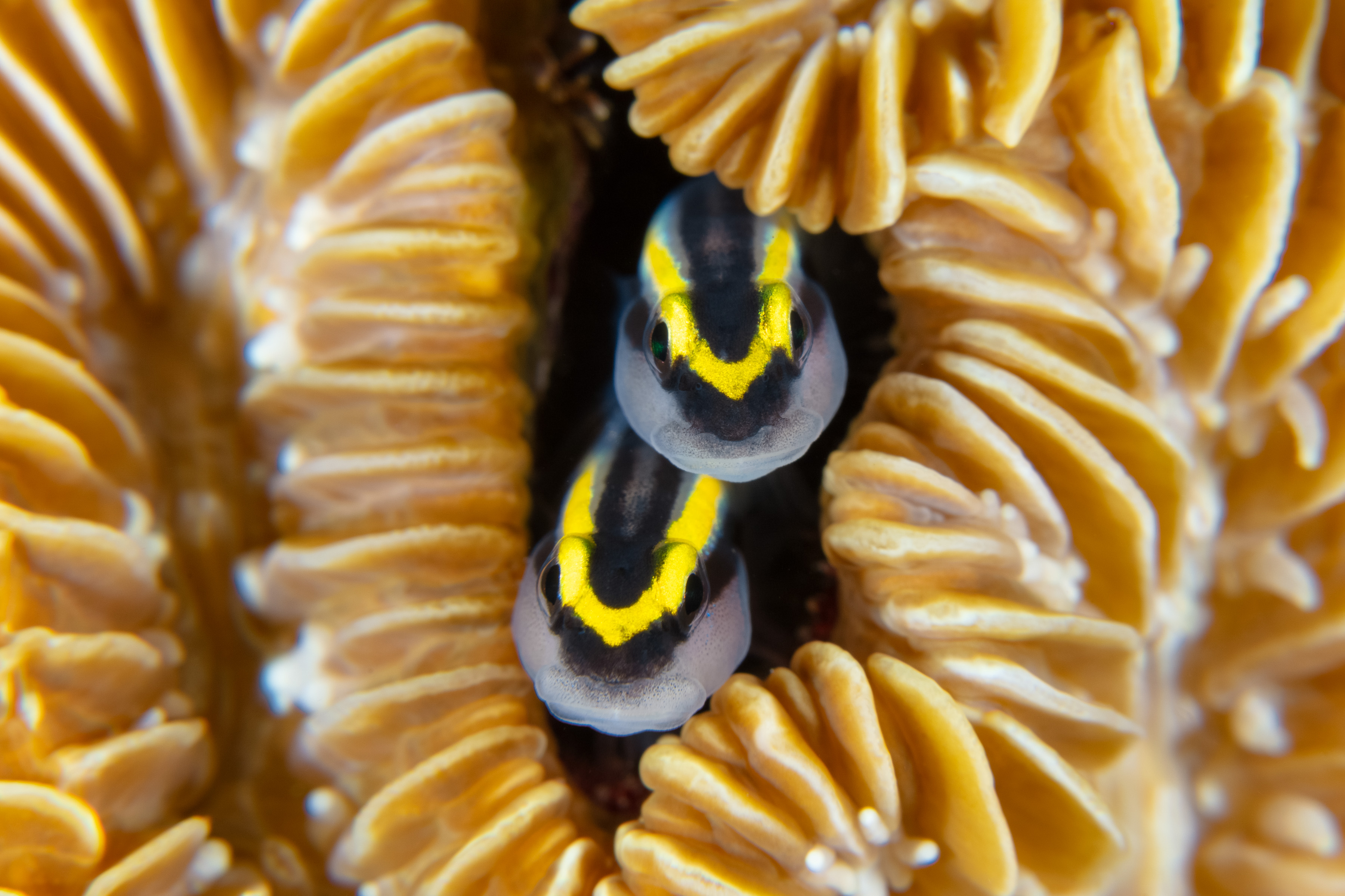 The Sharknose Goby is a cleaner fish, often found in small groups at cleaning stations on coral heads. It removes parasites from larger fish and is not shy around divers.