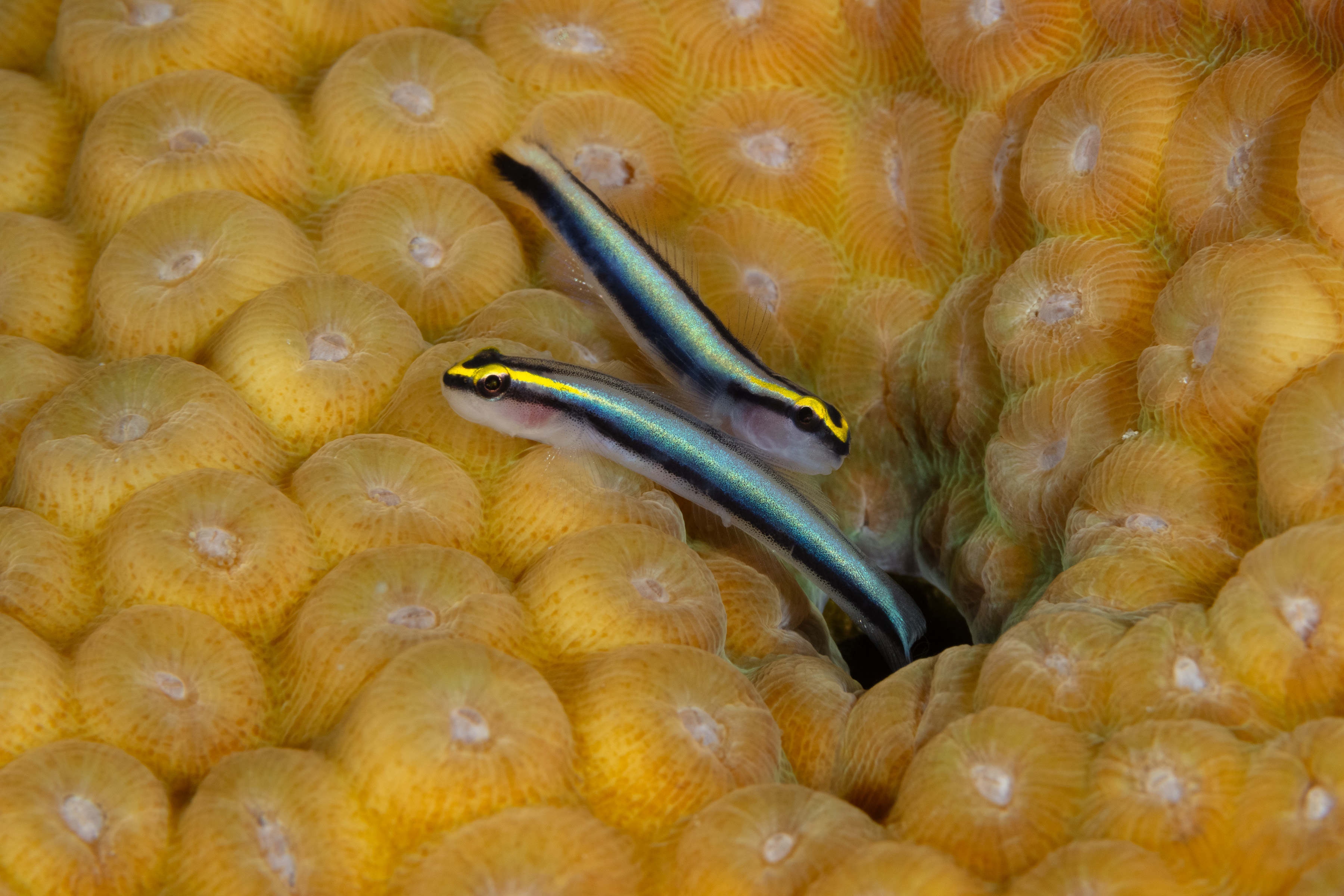 The Sharknose Goby is a cleaner fish, often found in small groups at cleaning stations on coral heads. It removes parasites from larger fish and is not shy around divers.