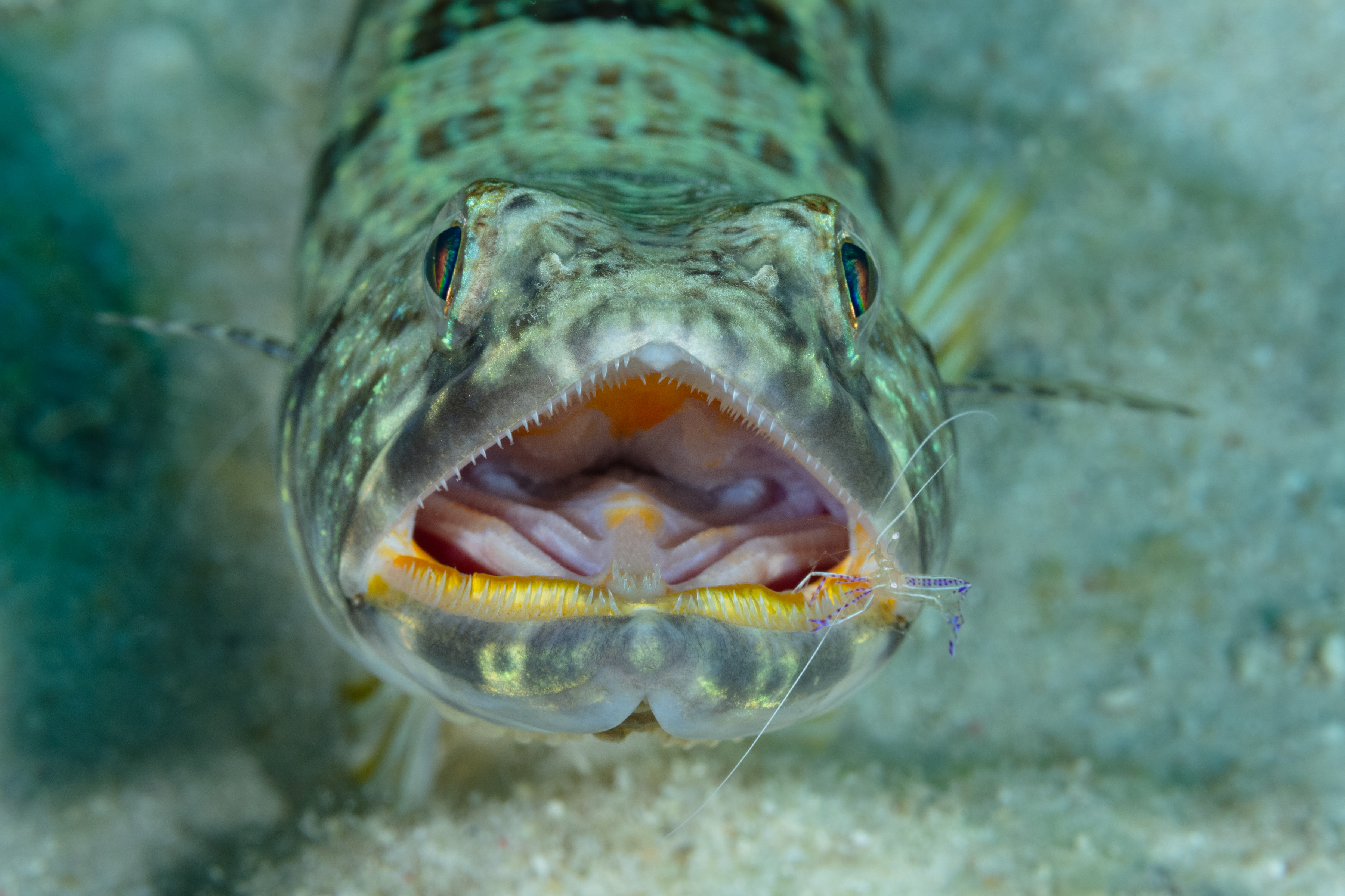 Pederson Cleaner Shrimp cleaning a Sand Diver