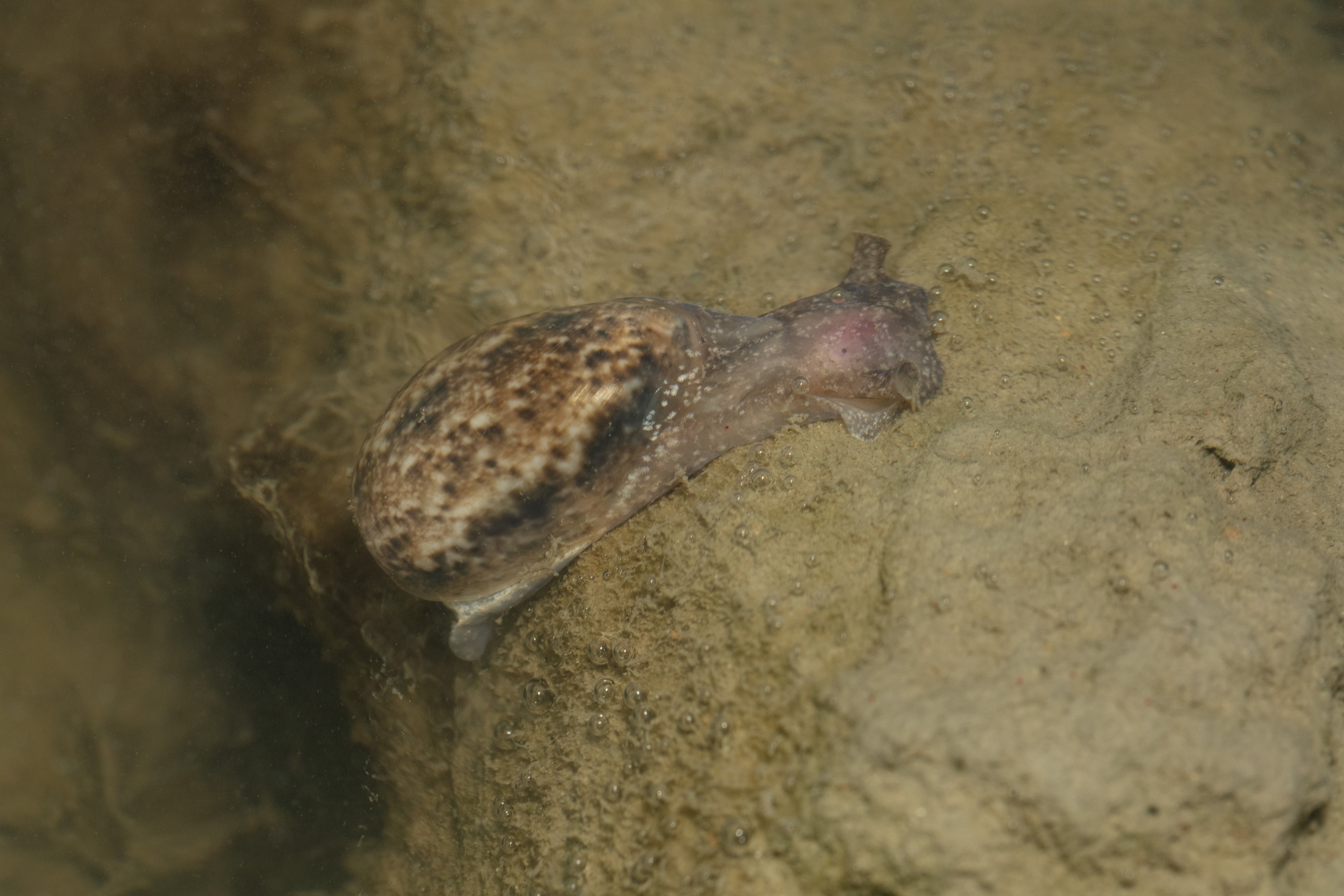 This Bubble Snail is mostly active at night, when it feeds on algae. It hides in sand or muddy areas during the day.