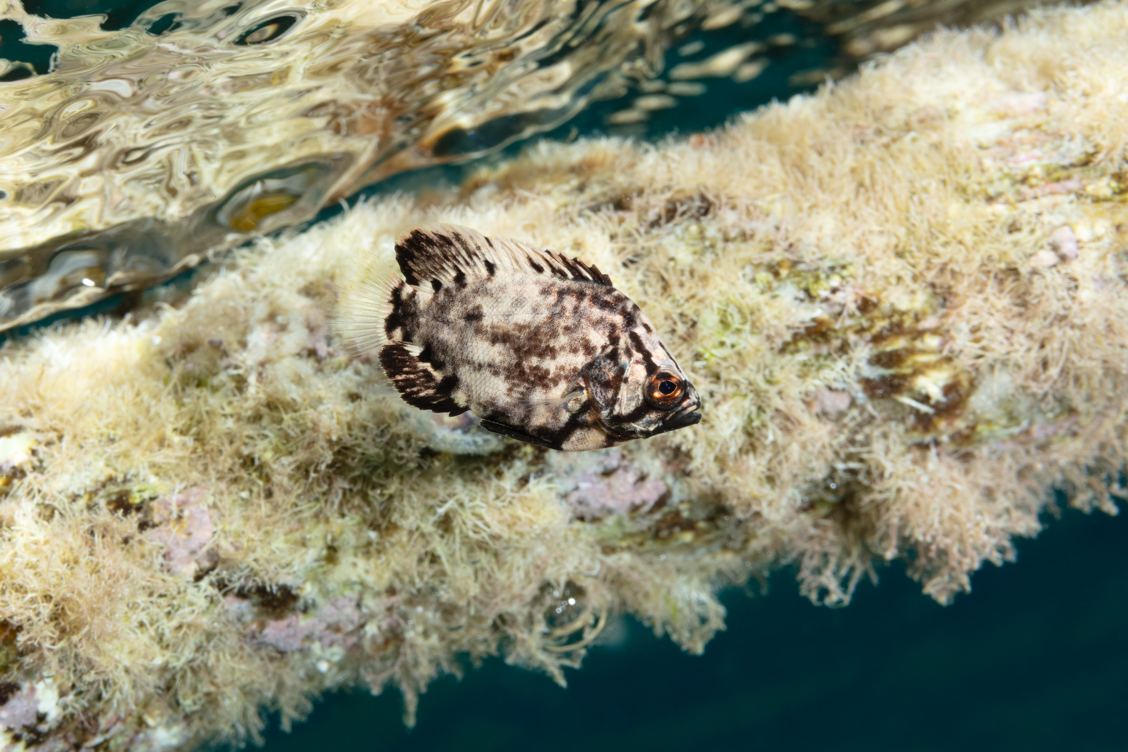 The Atlantic Tripletail is usually found swimming near the surface around floating debris, docks, buoys, or in the shallow waters of the mangrove. It swims slowly and may drift on its side to blend in with its surroundings. Juveniles often mimic leaves or seaweed to avoid predators.