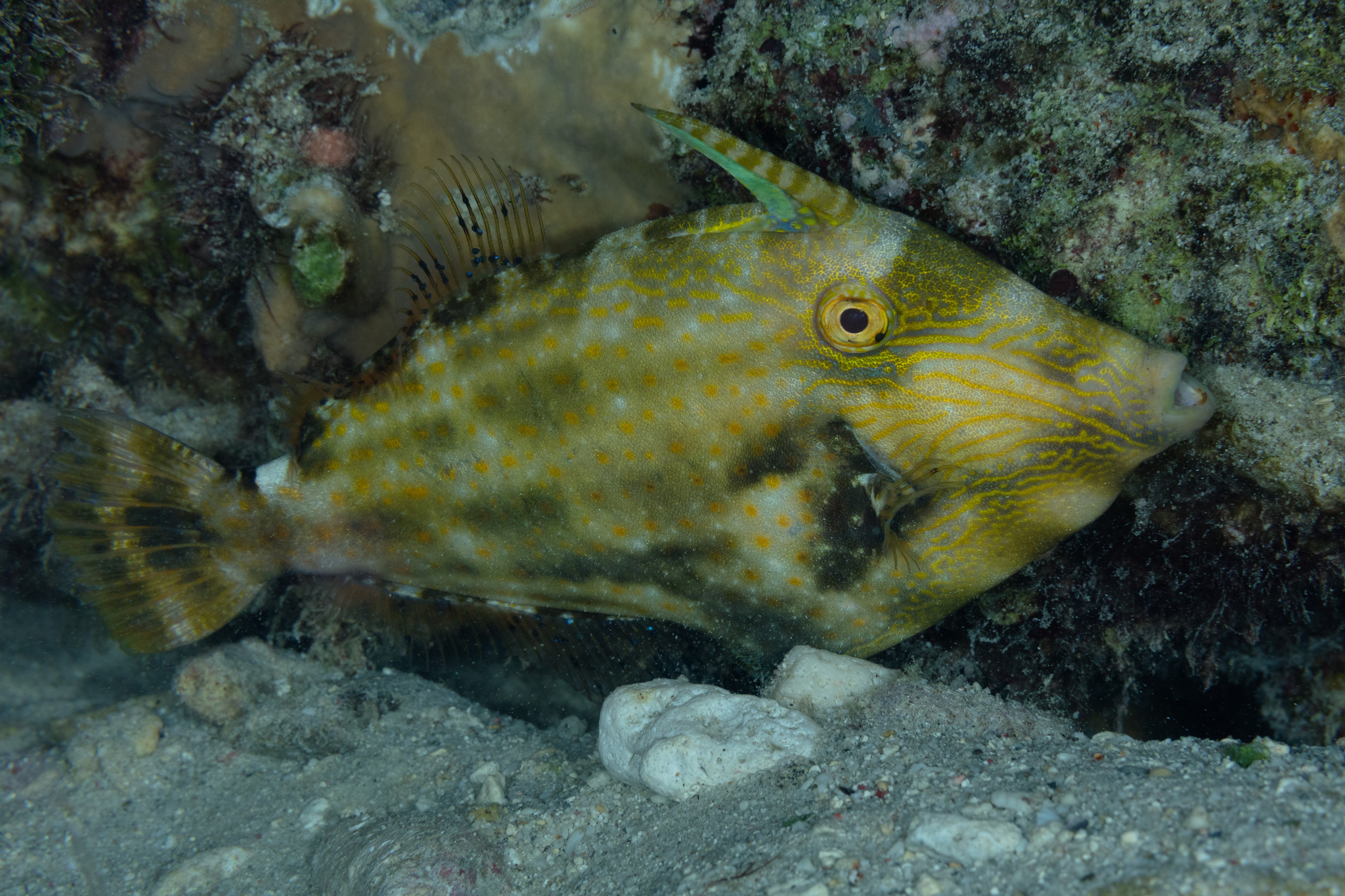 Orangespotted Filefish, At Night