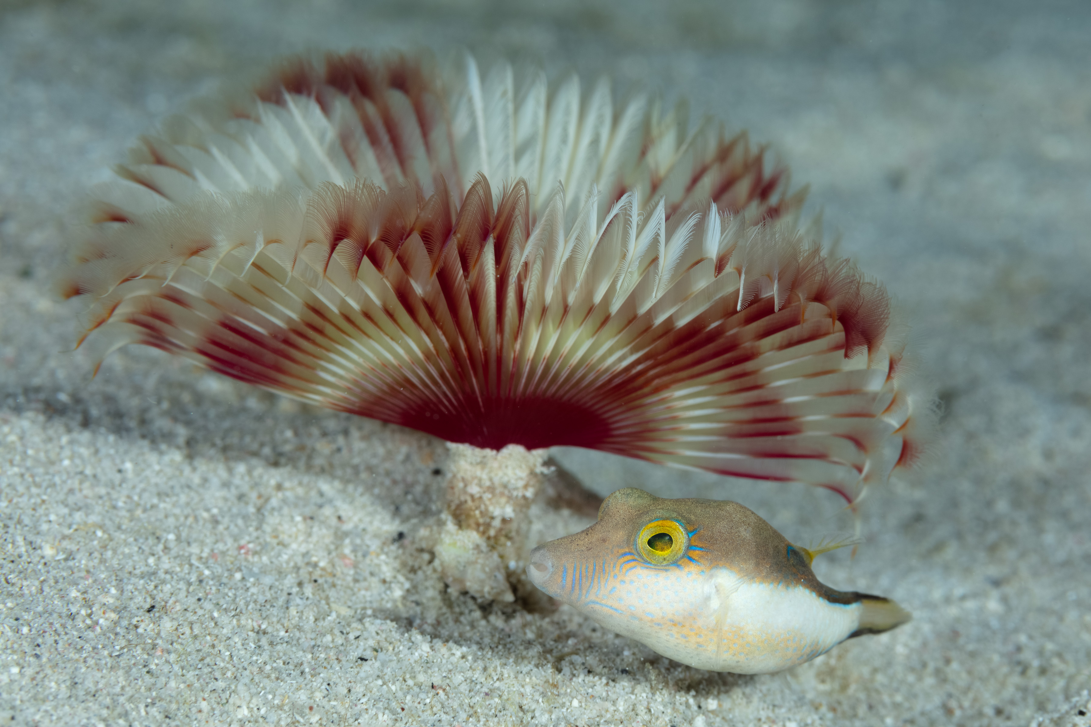 Sharpnose Puffer under a Feather Duster