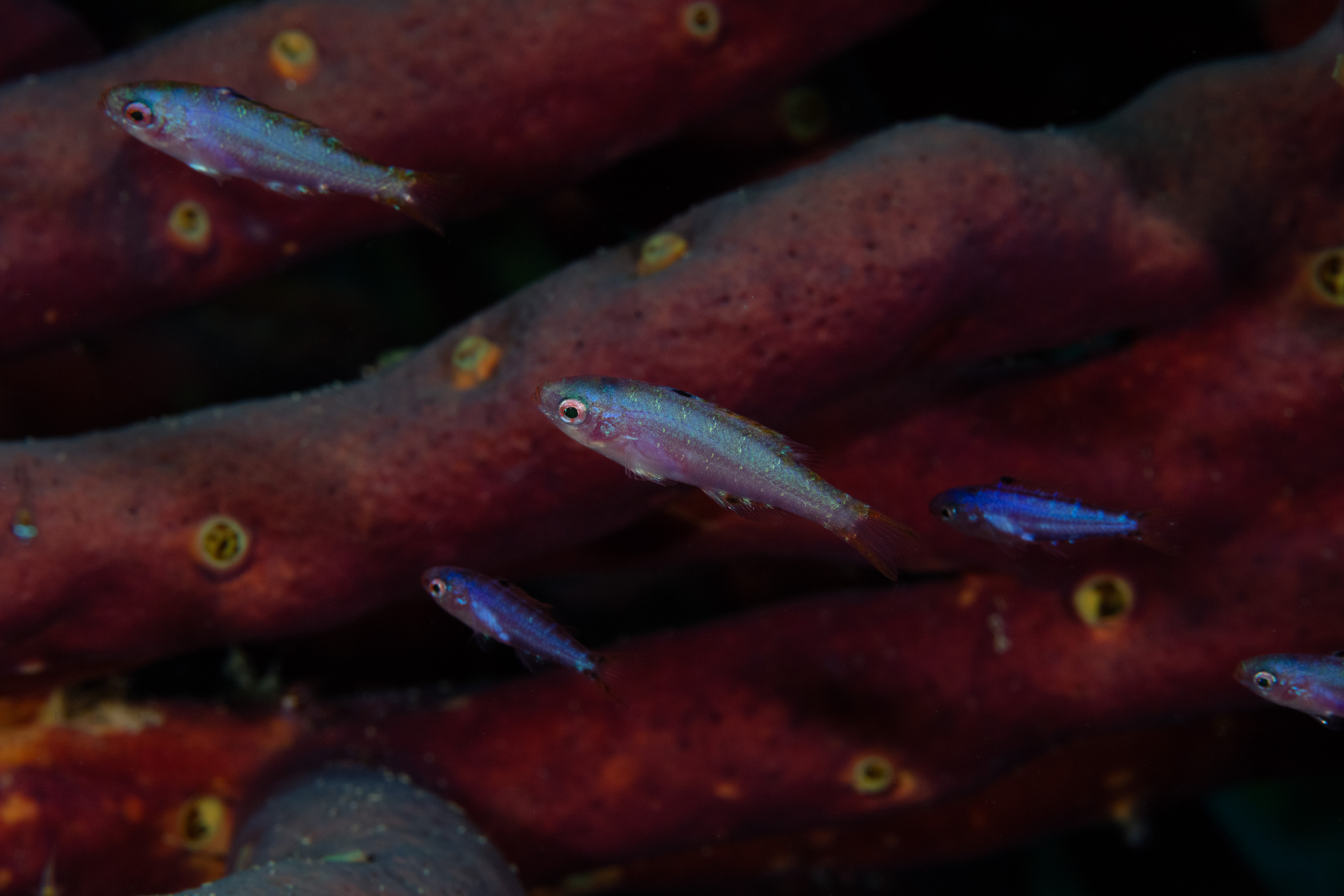 The Creole Wrasse is often seen swimming in open water near drop-offs and over reefs, either in small groups or large streaming schools.