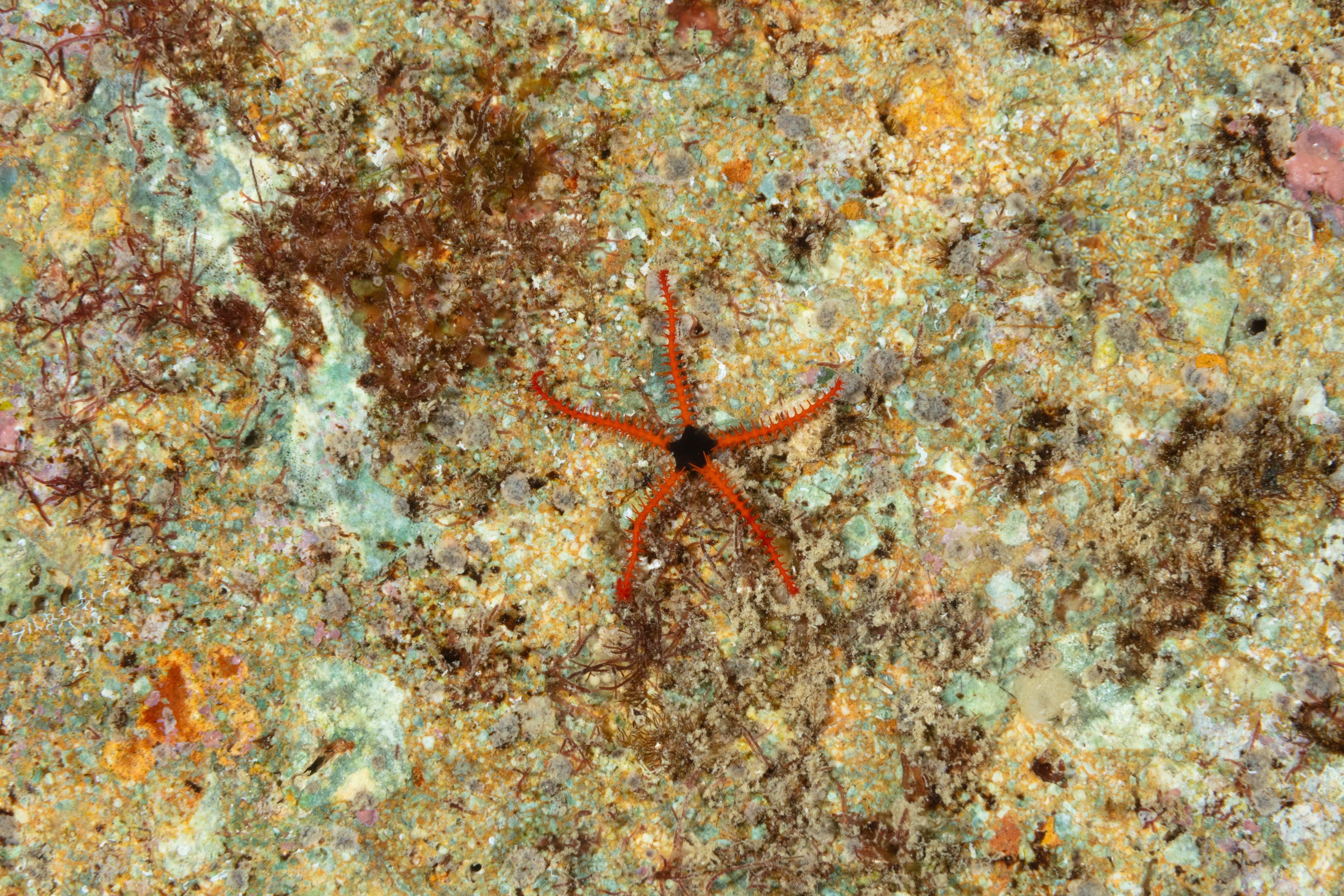The Brittle Star in this photo could be a juvenile Angular Brittle Star or Wendt's Brittle Star.