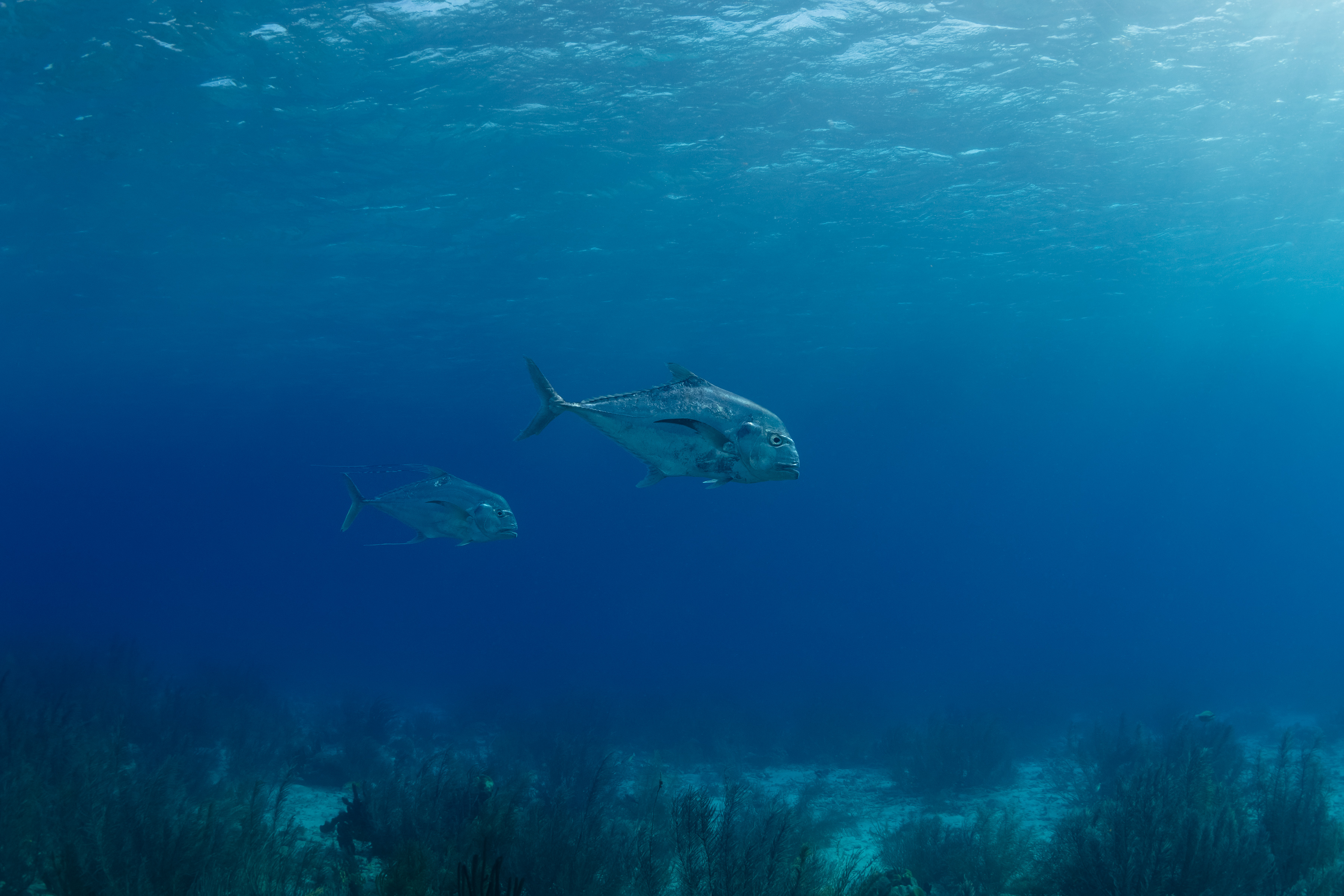 In this photo, notice the threadlike extensions on the second African Pompano in the background.