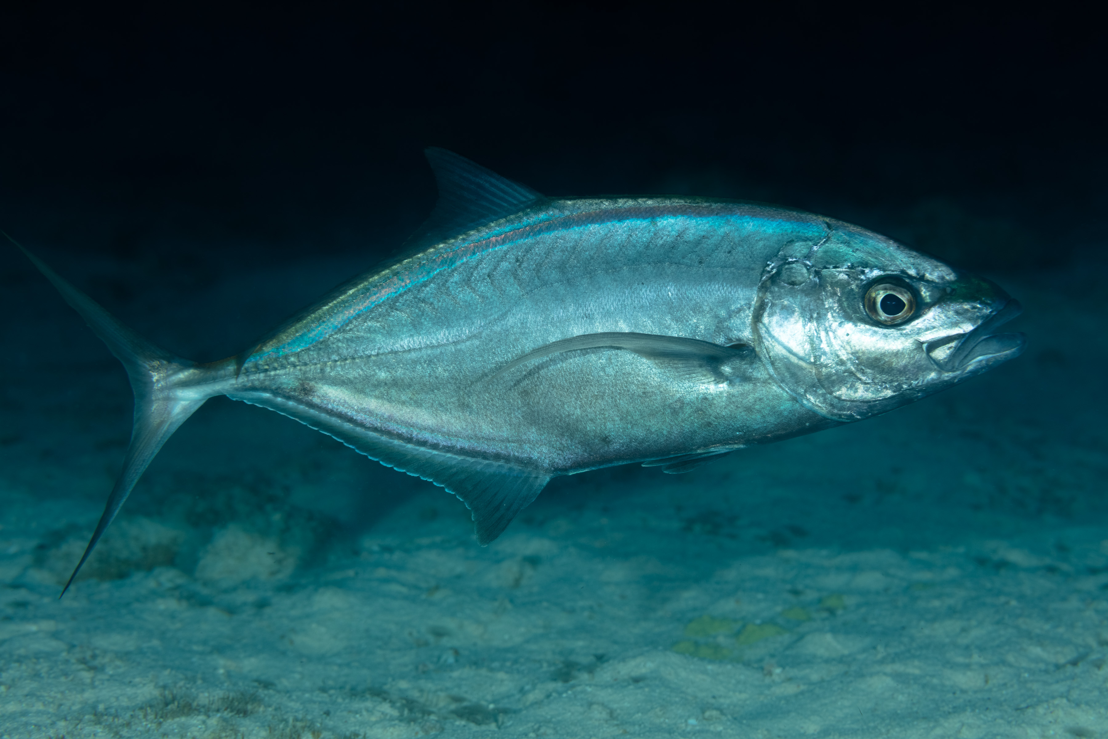 This Jack is mostly found solitary or in small groups in clear, shallow waters. It is known for its opportunistic feeding behavior, sometimes following other fish to snatch food stirred up from the seafloor. Bar Jacks are also common around bait balls, where they hunt small fish in fast, coordinated bursts. Juveniles often seek shelter near pilings and dock areas, or with floating Sargassum seaweed.