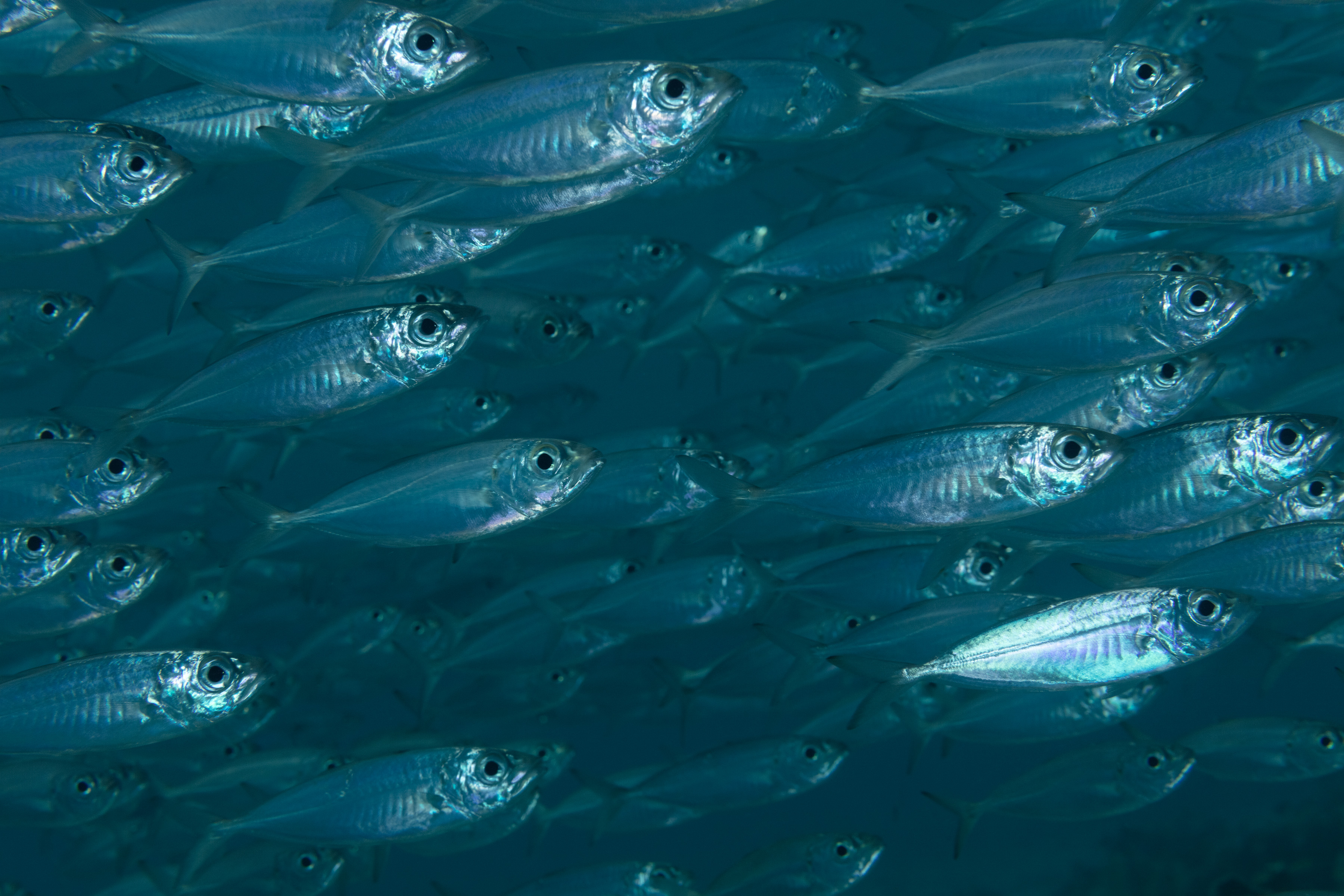 The Bigeye Scad often forms massive, fast-moving schools known as baitballs. This schooling behavior is a key survival tactic, as the group’s movements can confuse and scare off predators. The Bigeye Scad hunts mainly at night, feeding on zooplankton and small crustaceans.