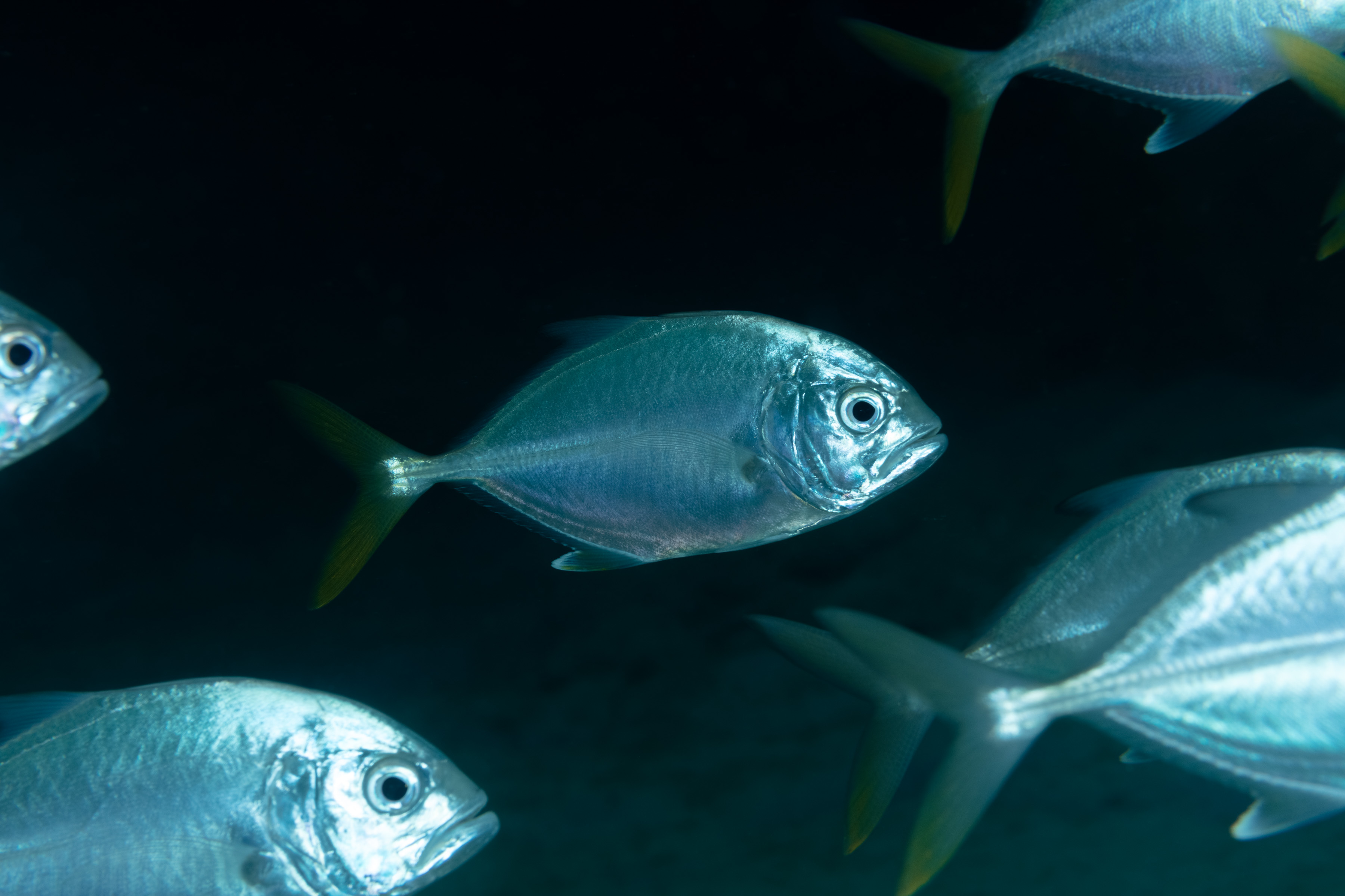 This Jack can be seen in large schools in open water, around wrecks, or in small groups in shallow sandy areas. They primarily hunt smaller fish, shrimp, and other invertebrates. Juveniles often stay in sheltered coastal areas where they can find food and protection. Although generally cautious, they sometimes come near, drawn by exhaled bubbles.