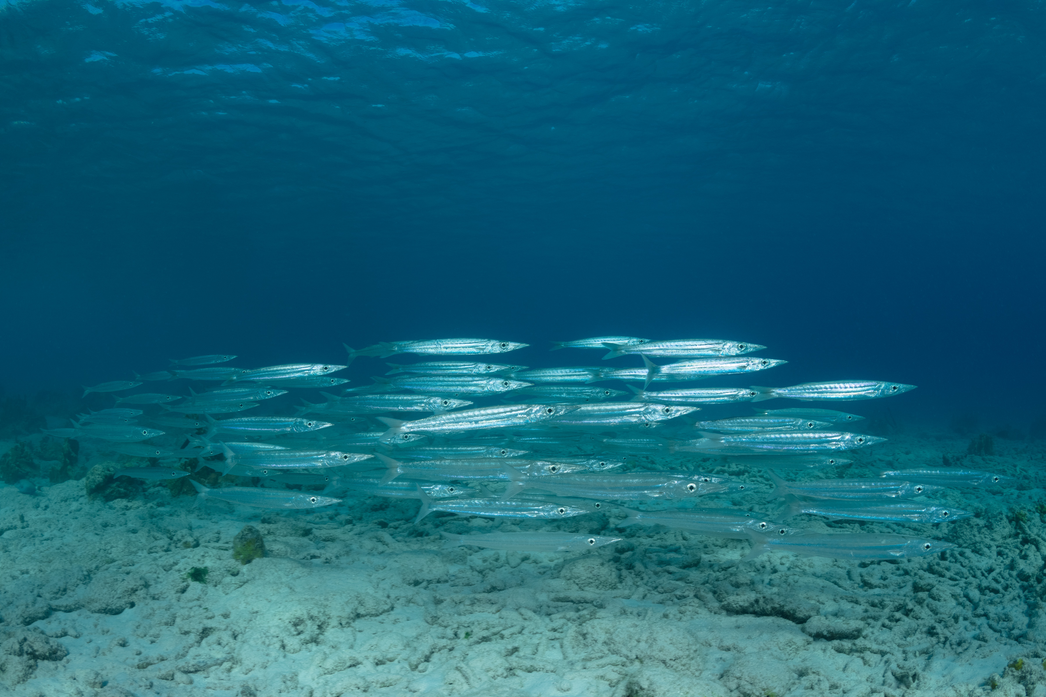 The Southern Sennet is often seen in groups near the reef and shallow sandy areas. It is a fast, active predator that uses its speed to hunt. It primarily eats smaller marine animals like shrimp, squid, and small fish.
