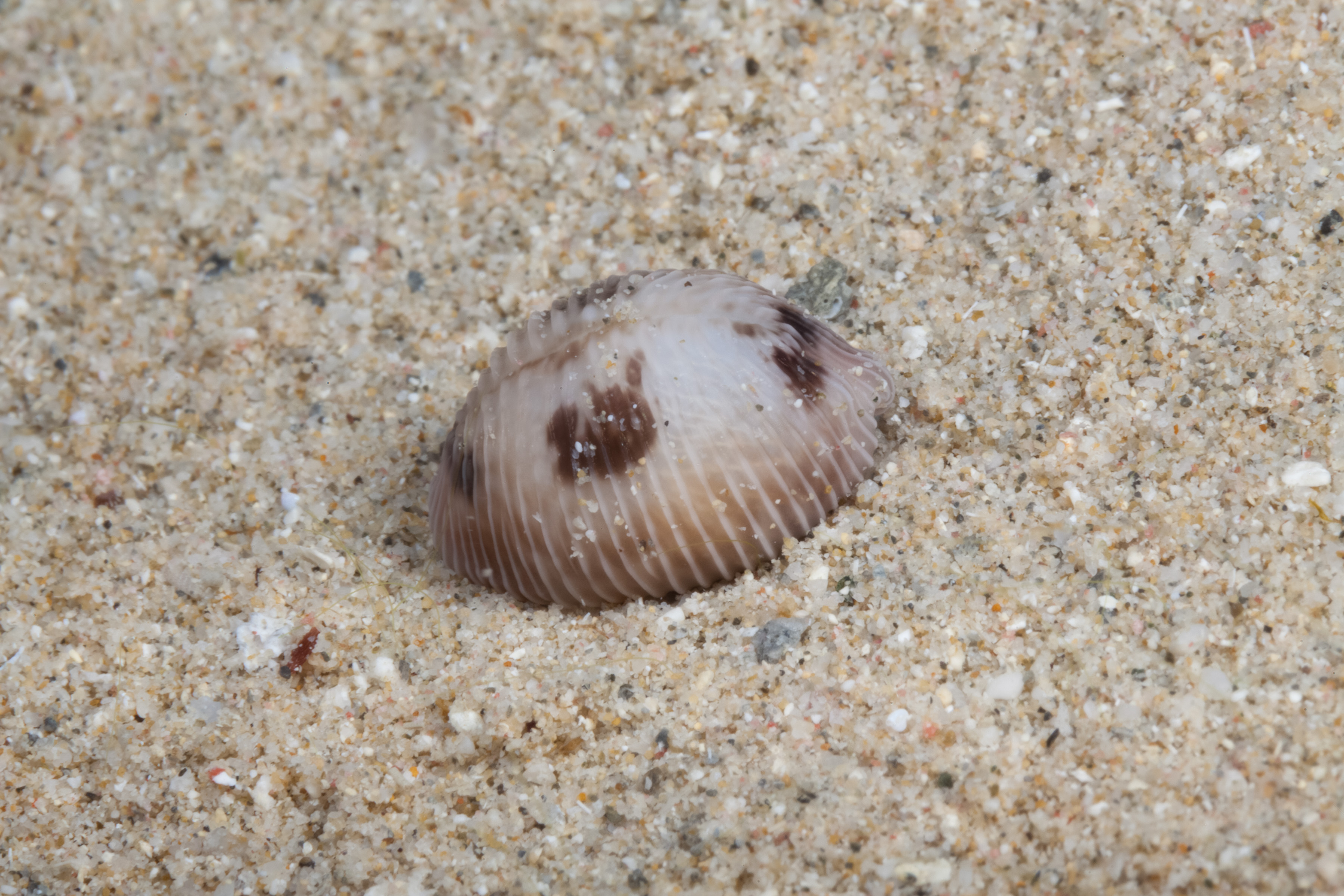 This snail has a grooved shell, often marked with dark blotches. Its mantle is dark gray, brown, or orange, with extensions or knobby bumps.
