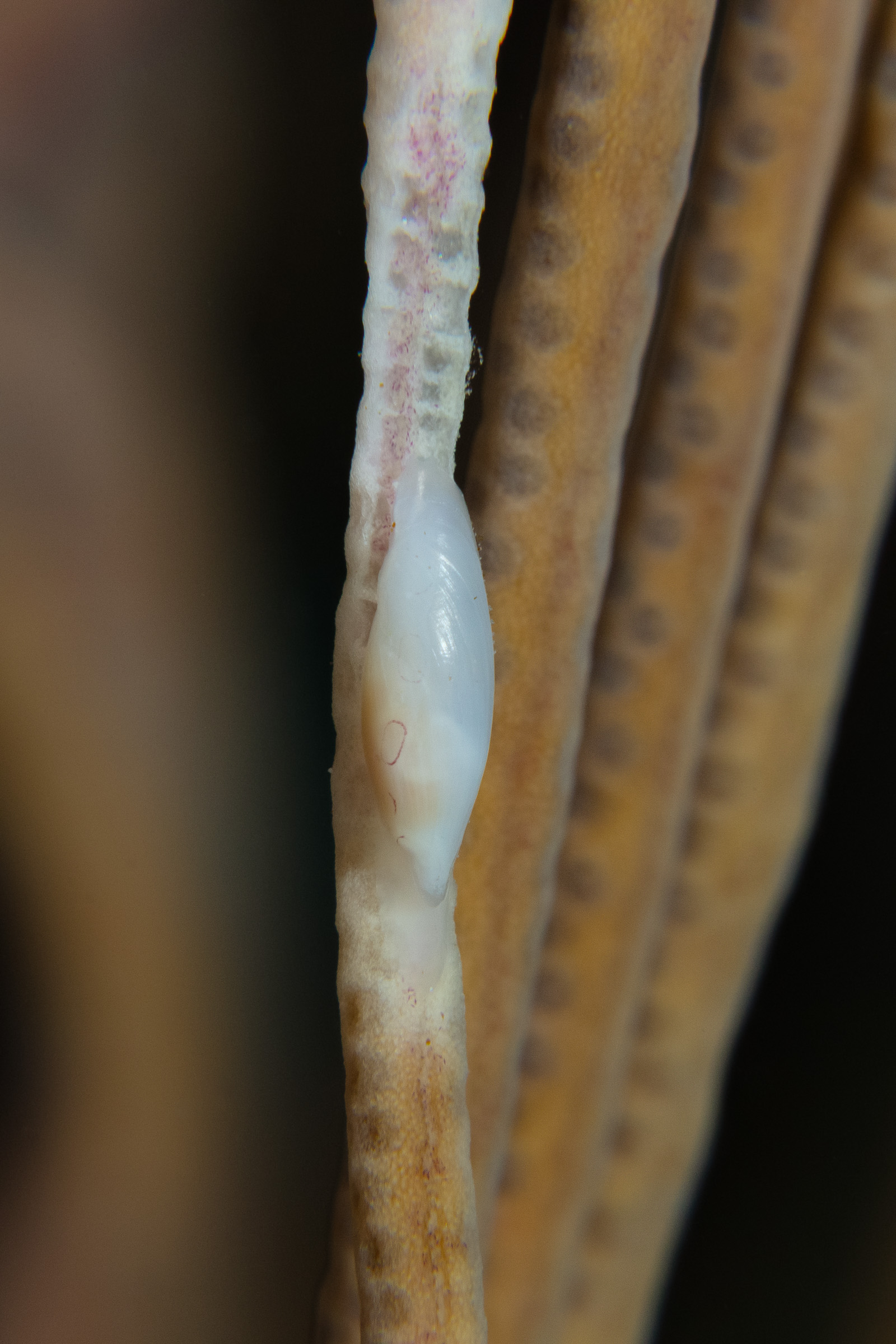 The Pink-Circled Simnia feeds on Gorgonians.