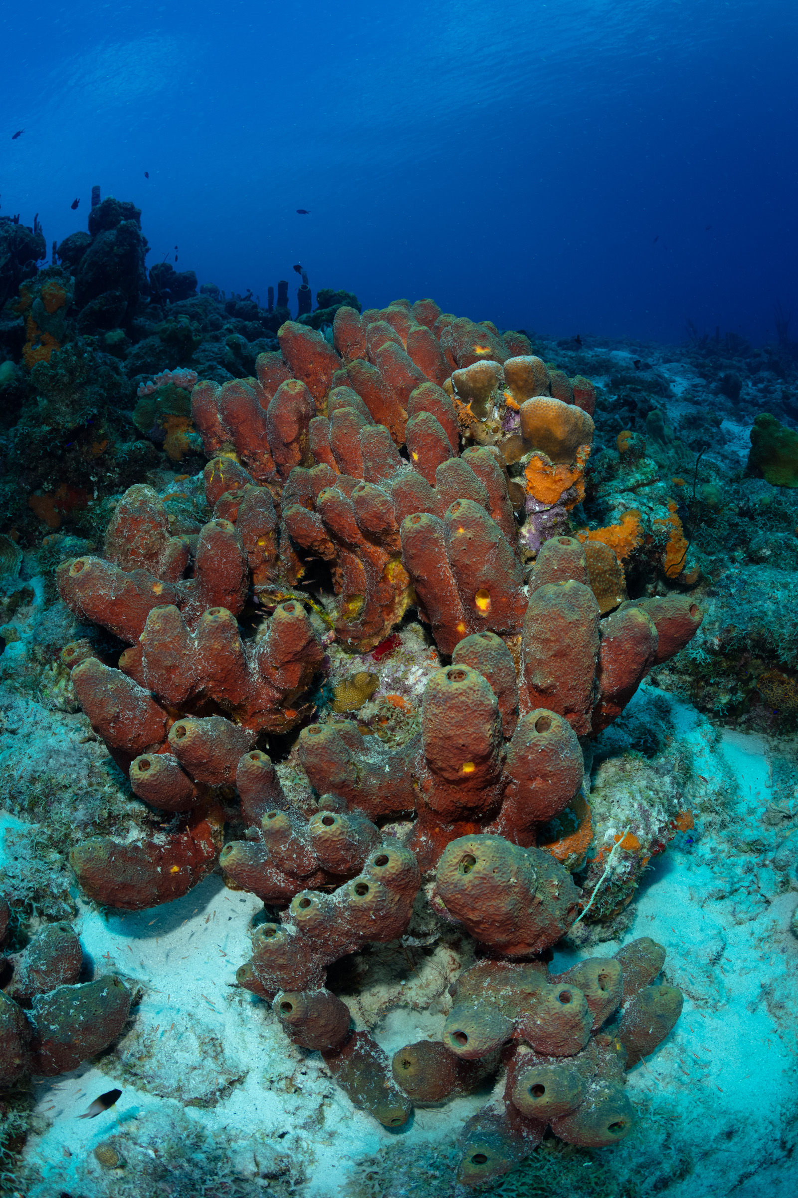 The Branching Tube Sponge can look very different depending on where it grows. It is found from deep reefs to shallow mangroves and often hosts small shrimps in its tubes. It grows slowly, and large individuals may take years to reach maturity. Its toxic tissues help protect it from predators, allowing it to live for many years.