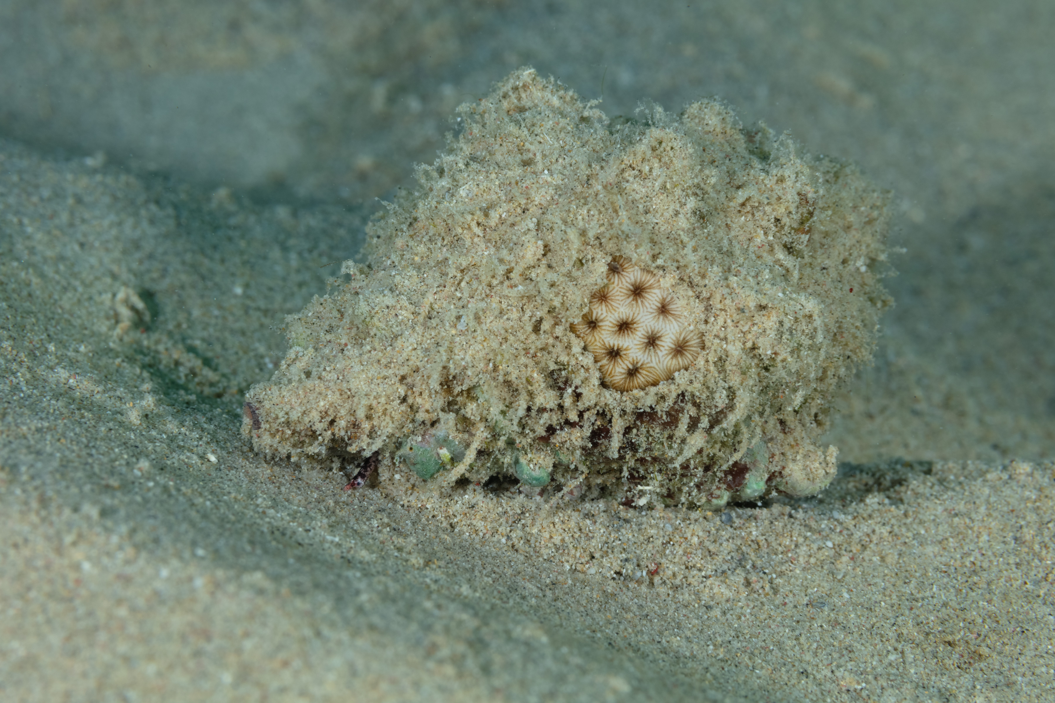 This Snail is very common and can be found crawling on the sandy bottom. However, its specific identification is still unknown.