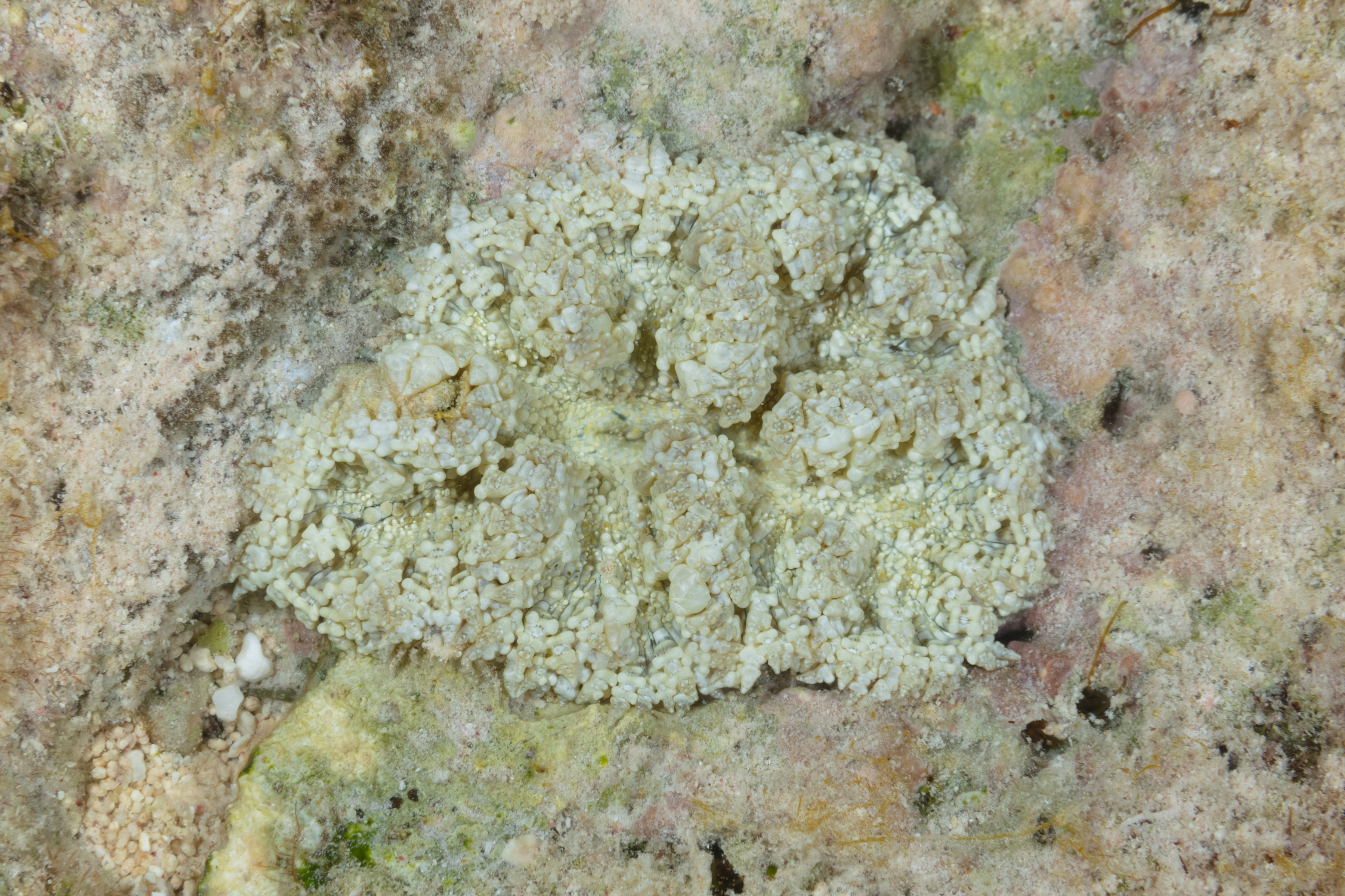 Unidentified Unidentified: This species has not been identified, as no name or classification could be determined from the available photo. This might be a newly settled or very young Knobby Cactus Coral. If you can identify this, please contact fishid@bonairereef.com