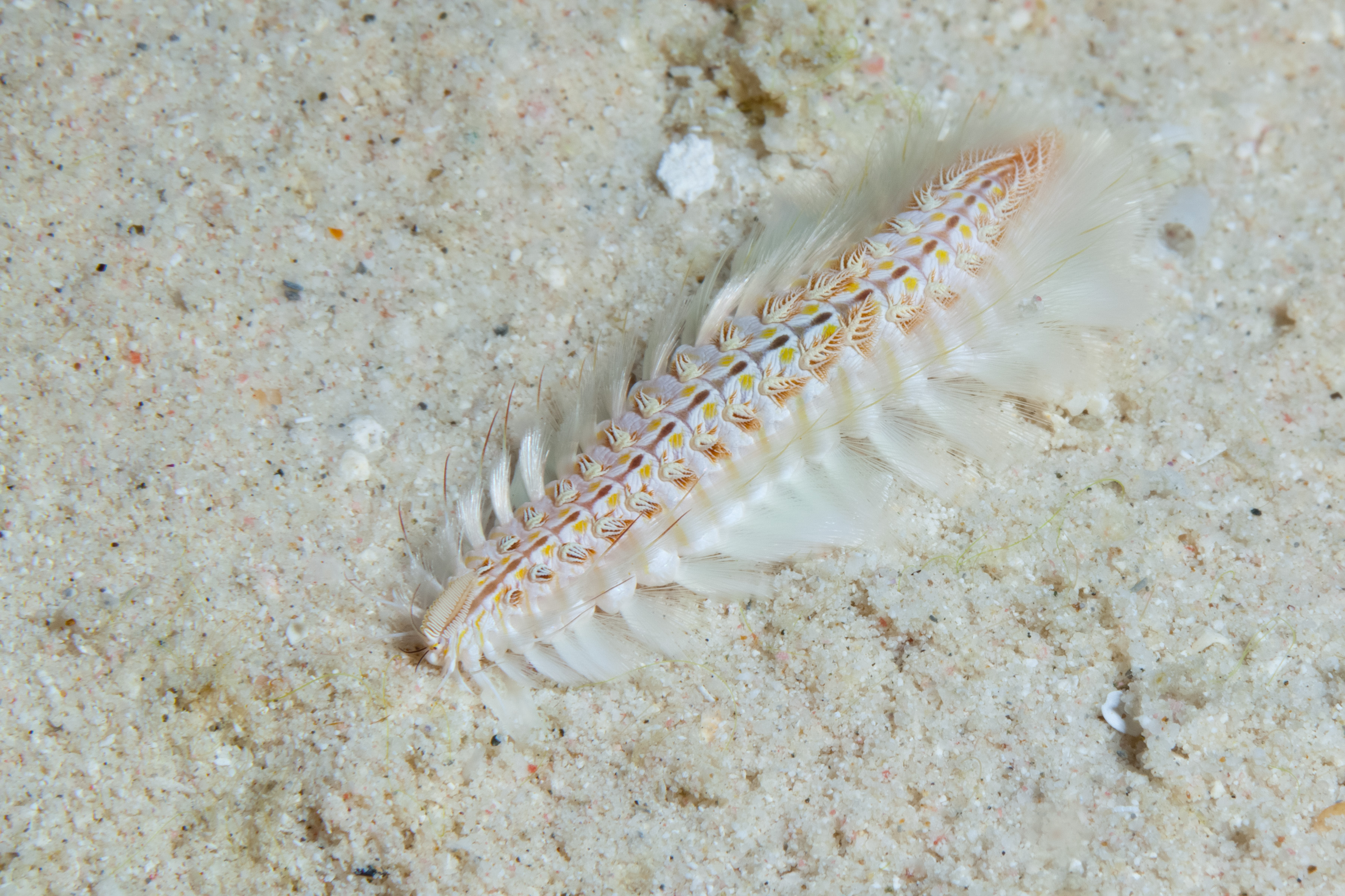 The bristles of the Blackline Fireworm can cause painful stings, so Divers should be careful to avoid touching them.