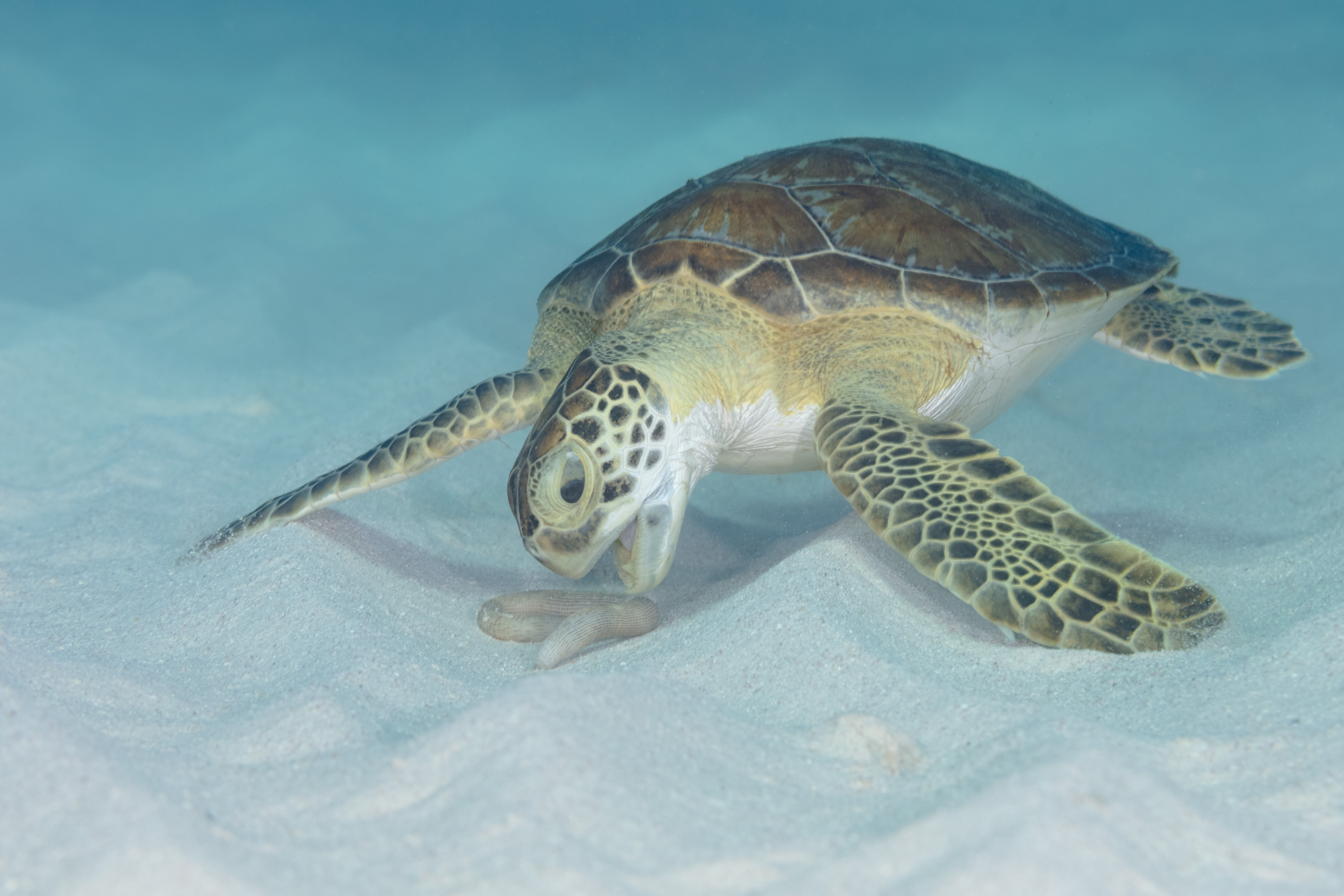 Peanut Worm with a Green Sea Turtle