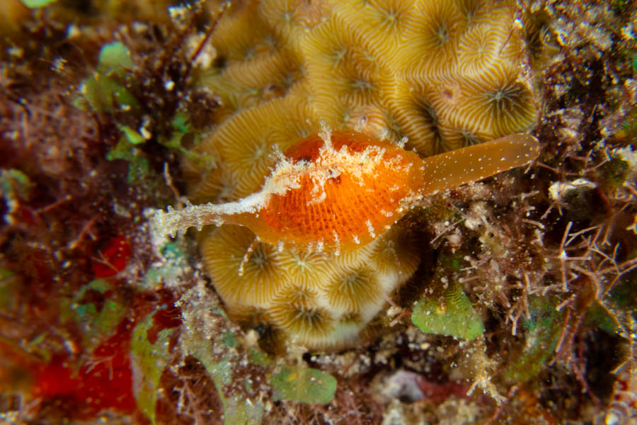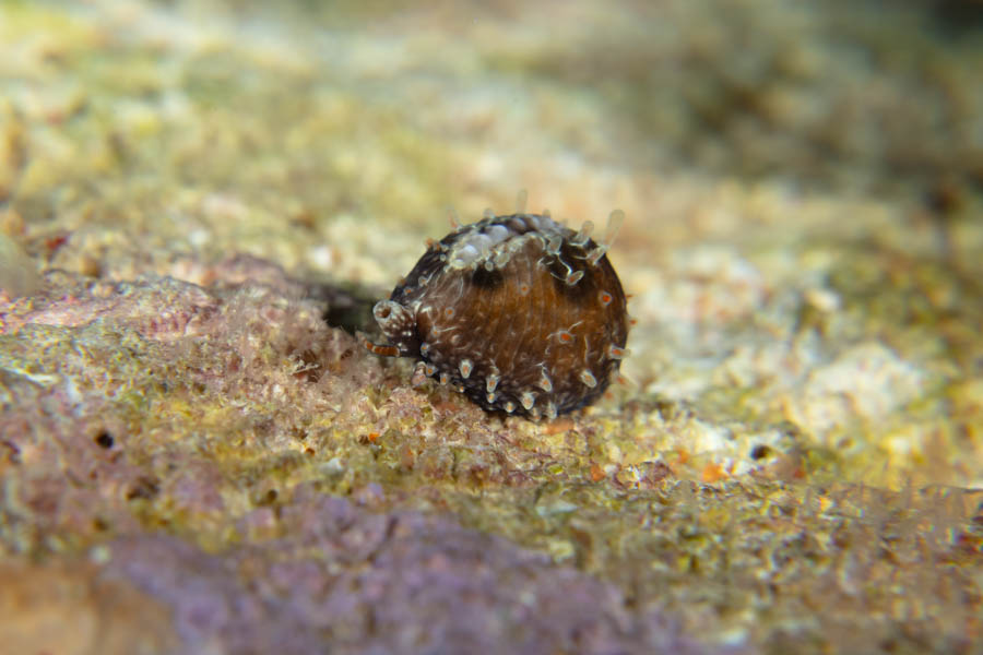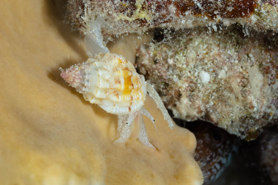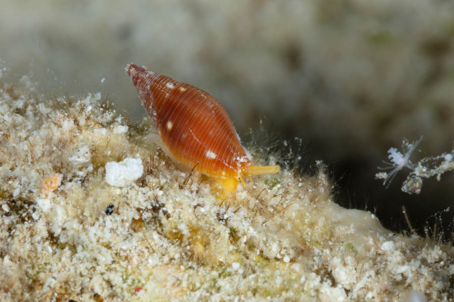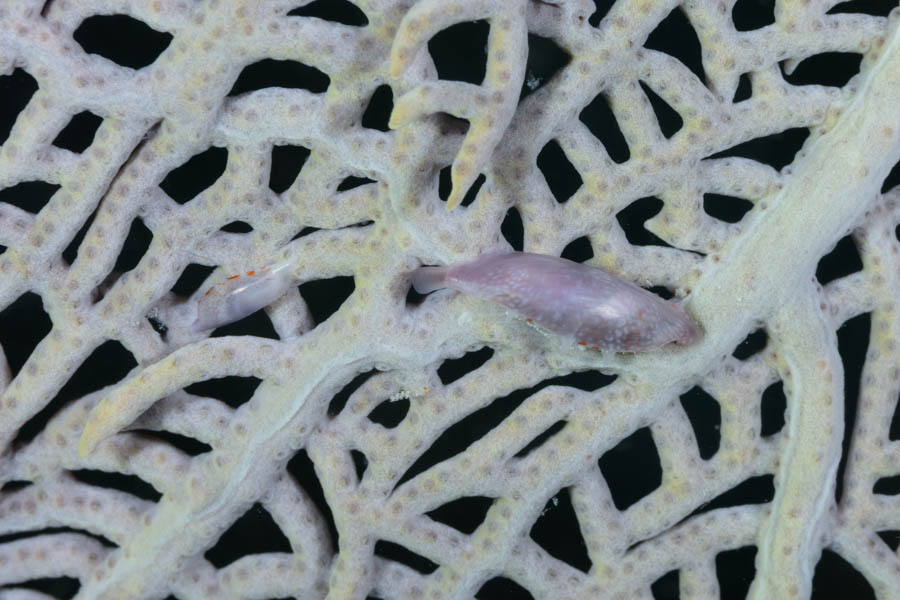 Sharp Eulima on a Three-Rowed Sea Cucumber